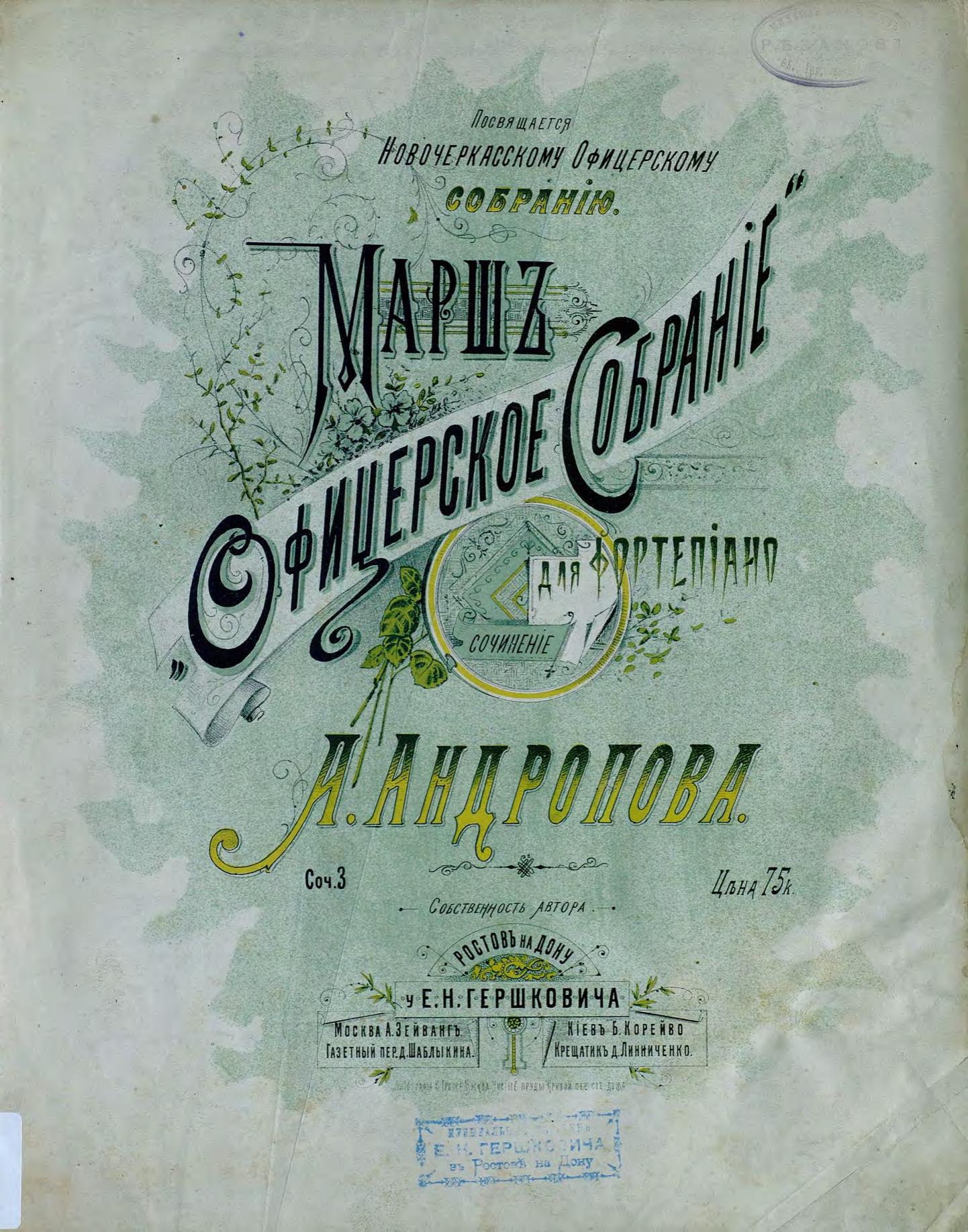 Перешедшие в общественное достояние материалы электронного фонда ЦГПБ им. В.В. Маяковского. Сведения о издательстве или типографии: Е. Гершкович. Место издания: Ростов-на-Дону