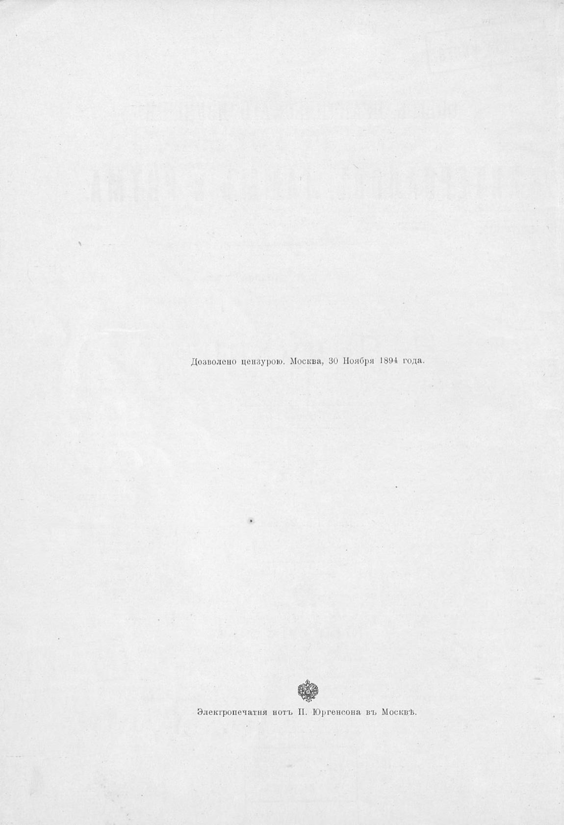 Перешедшие в общественное достояние материалы электронного фонда ЦГПБ им. В.В. Маяковского. Сведения о издательстве или типографии: П. Юргенсон. Место издания: Москва