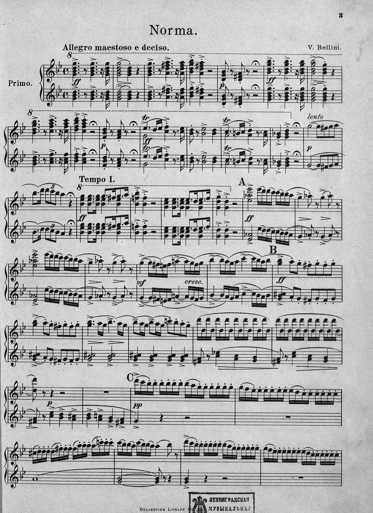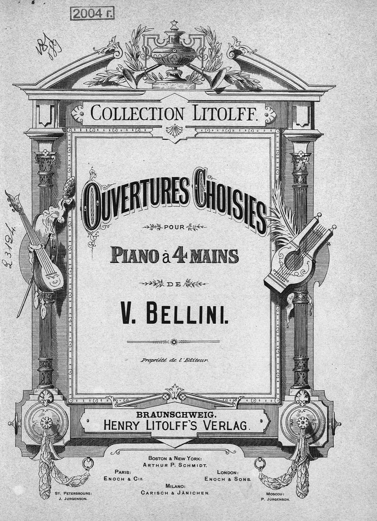 Ouvertures Choisies pour Piano a 4 mains de V. Bellini
