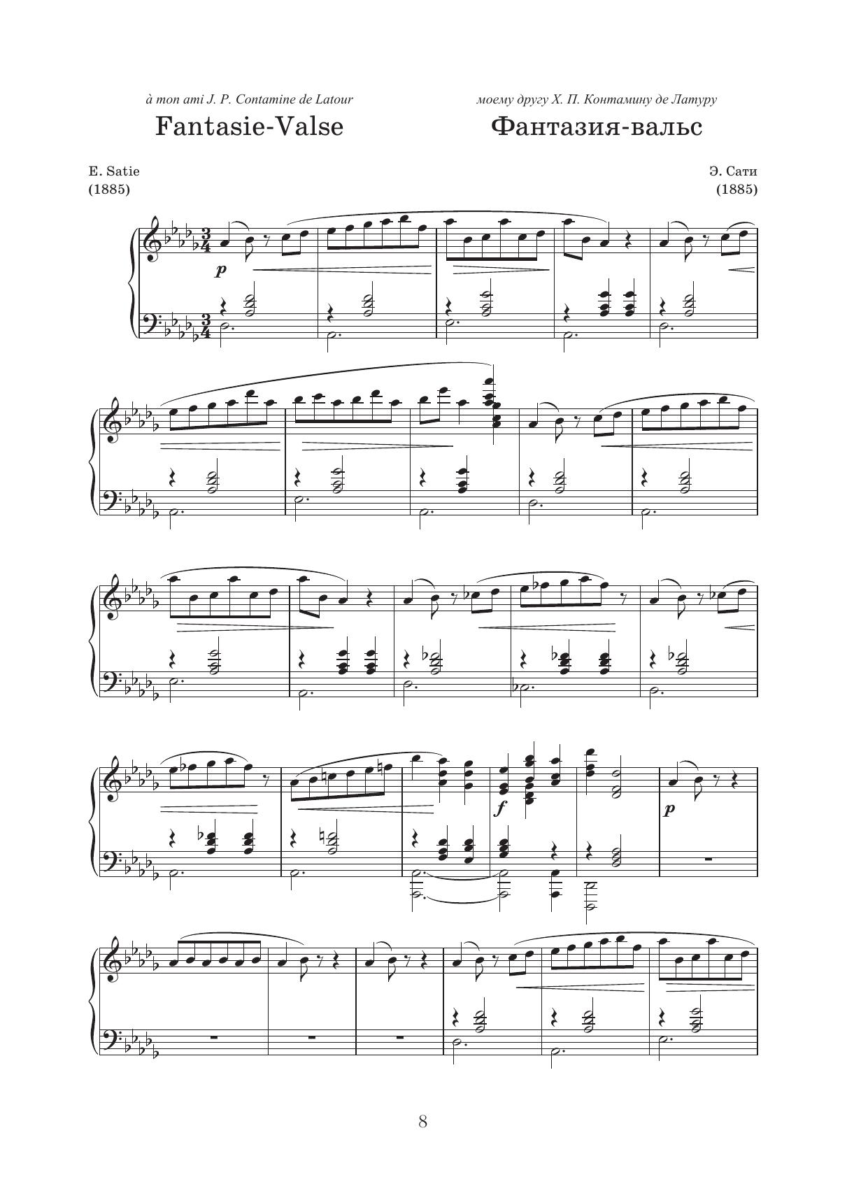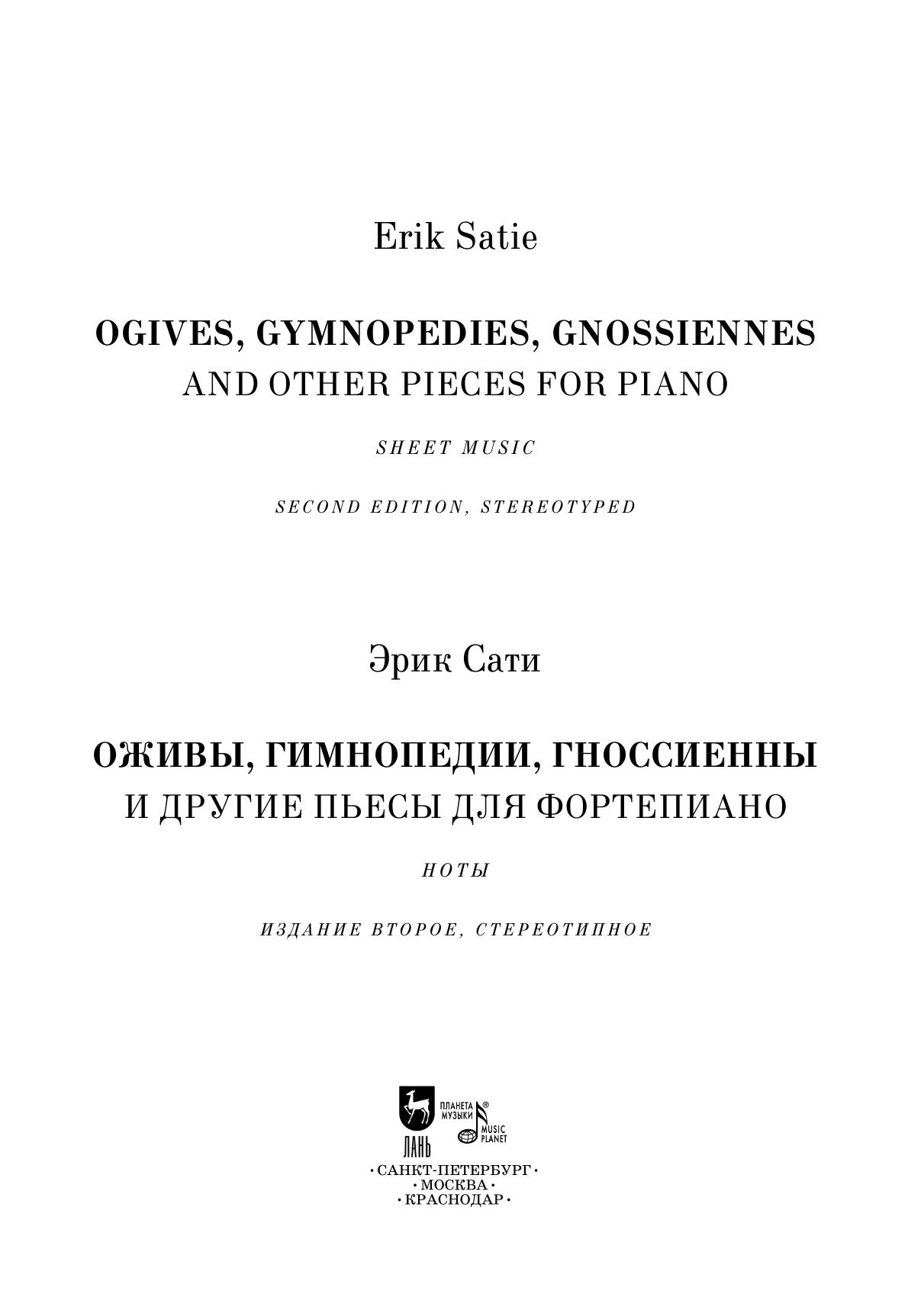 Эрик Сати (1866–1925) – композитор-эксцентрик, предвосхитивший множество музыкальных направлений, ставших в дальнейшем актуальными в истории музыкального искусства. Ему принадлежат первые образцы музыкального импрессионизма и одни из первых – музыкального неоклассицизма. Он первым применил репетитивную технику, ставшую основой репетитивного минимализма, и выступил предтечей эстетики метамодернизма. Влияние его творчества можно проследить не только в музыке Дебюсси и Равеля или французской «группы шести», но и в сочинениях Стравинского, Шостаковича и Кейджа. В сборник вошли наиболее знаковые и популярные фортепианные циклы автора, а также ряд других, менее известных пьес.