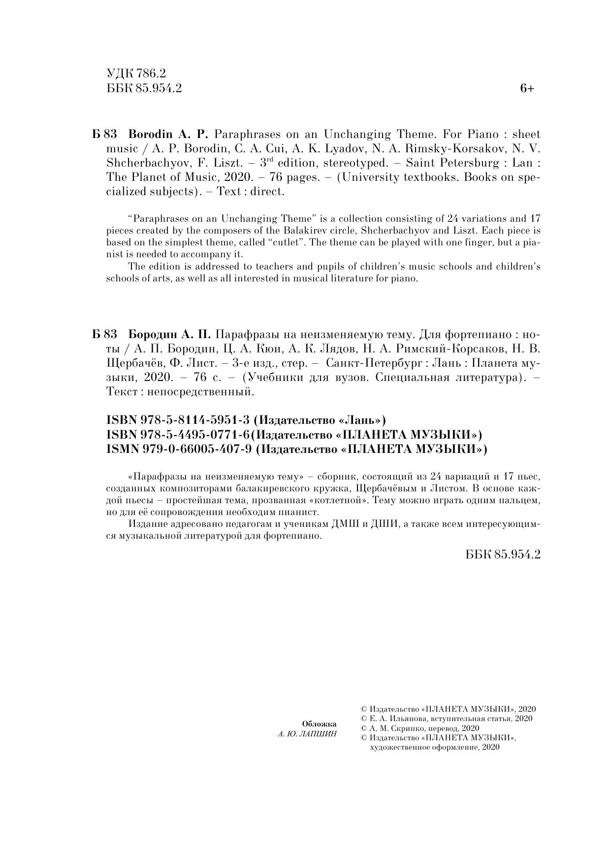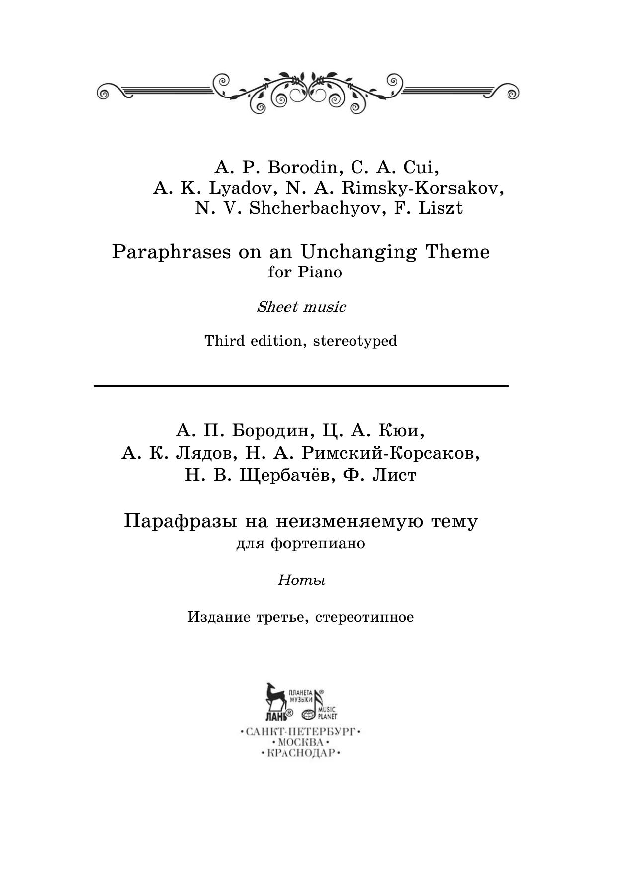Парафразы на неизменяемую тему. Для фортепиано