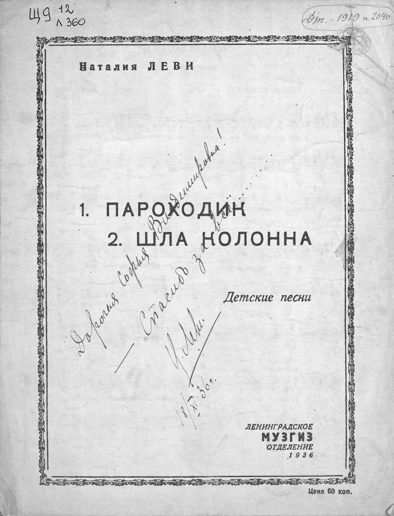 Перешедшие в общественное достояние материалы электронного фонда ЦГПБ им. В.В. Маяковского. Сведения о издательстве или типографии: Музгиз. Ленингр. отд- ние. Место издания: Ленинград