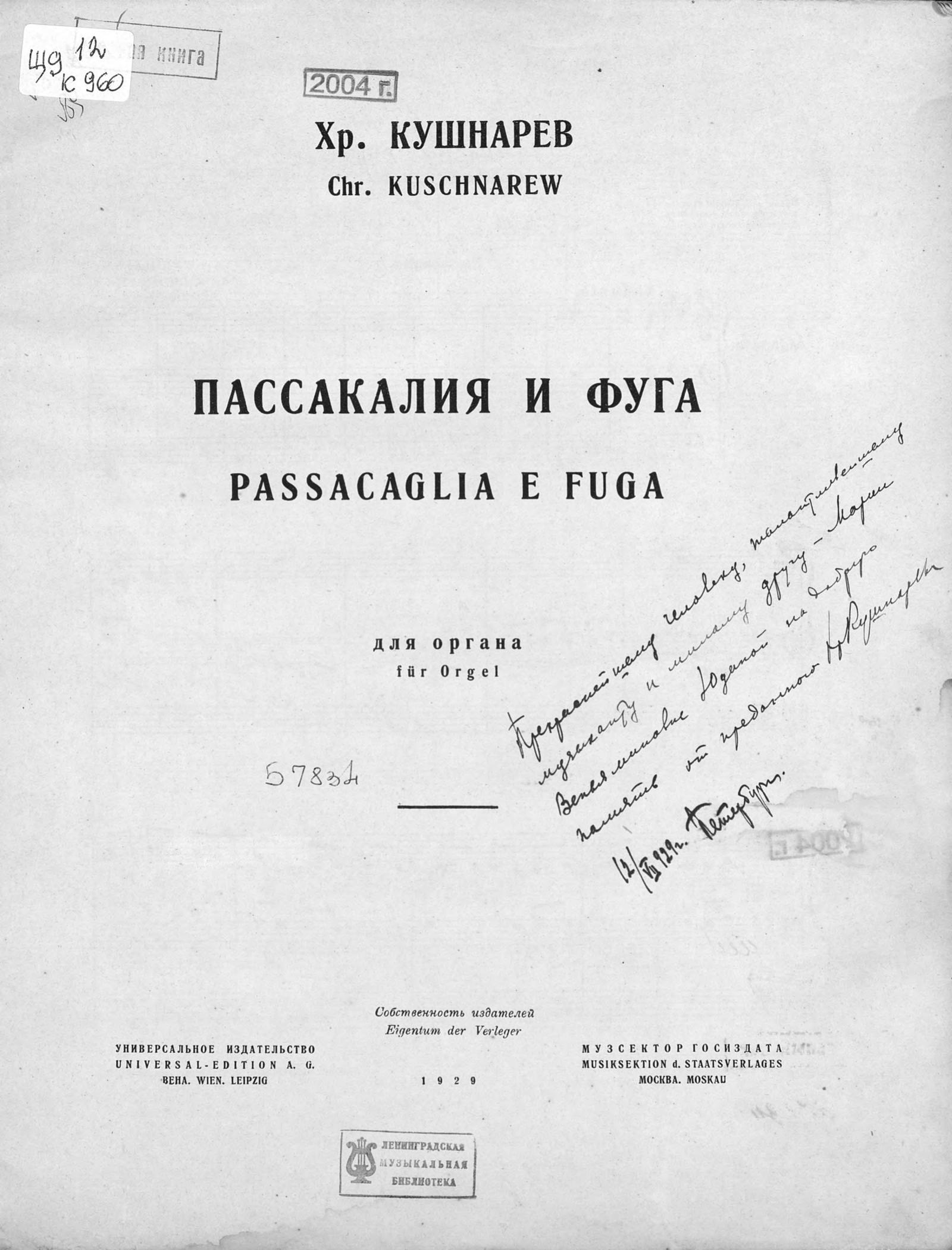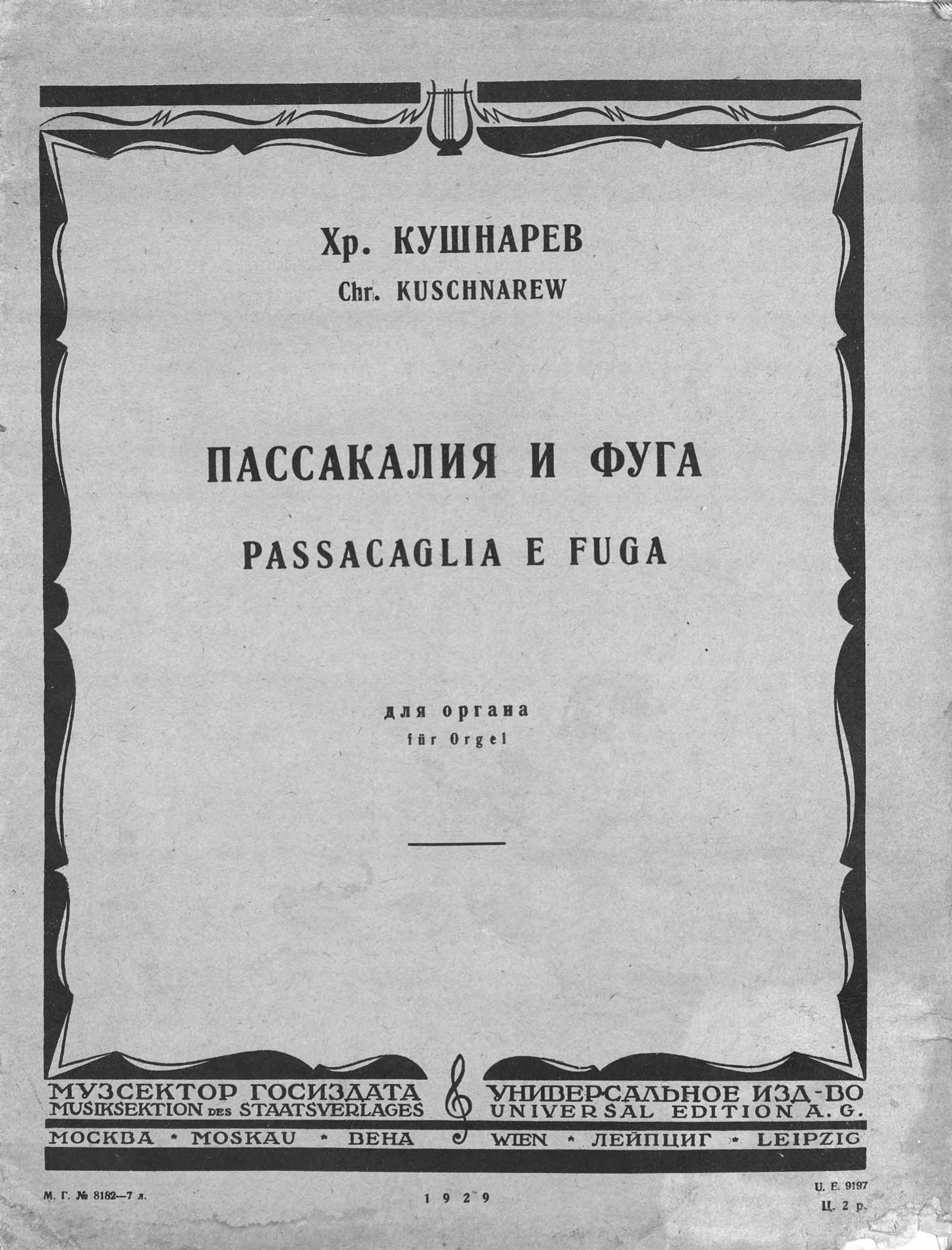 Пассакалия и фуга Ноты