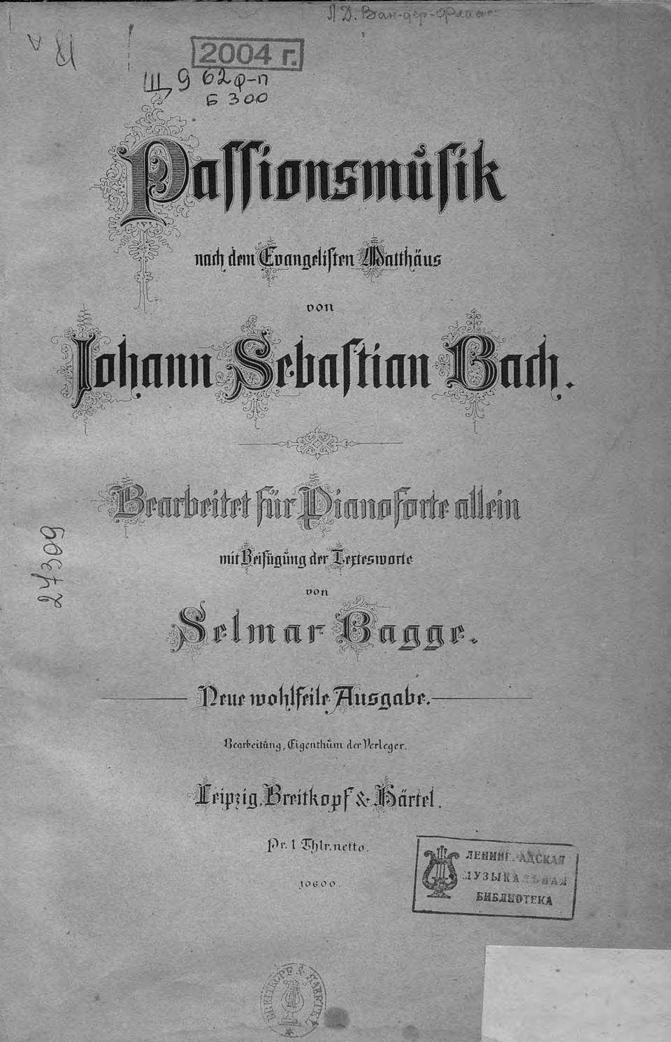 Passionsmusik nach dem Evangeliften Mattfaus von J. S. Bach