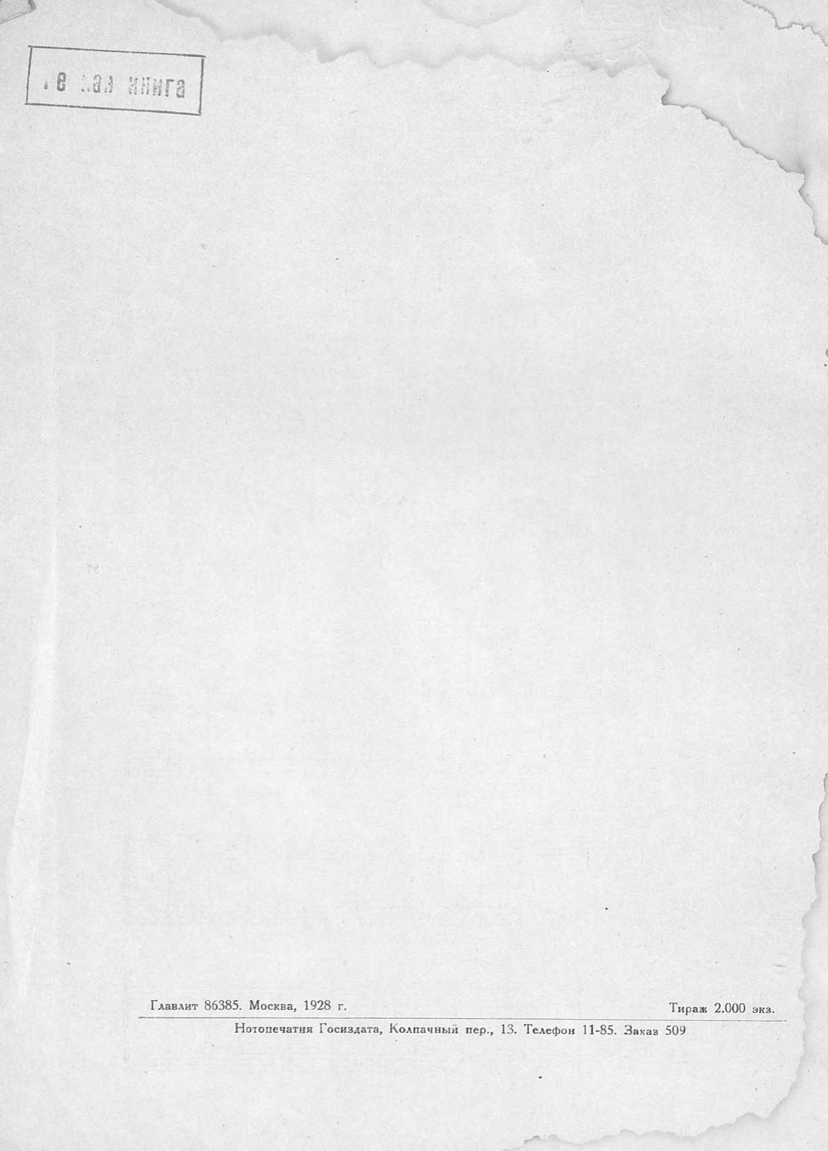 Перешедшие в общественное достояние материалы электронного фонда ЦГПБ им. В.В. Маяковского. Сведения о издательстве или типографии: Госиздат, Музсектор. Место издания: Москва