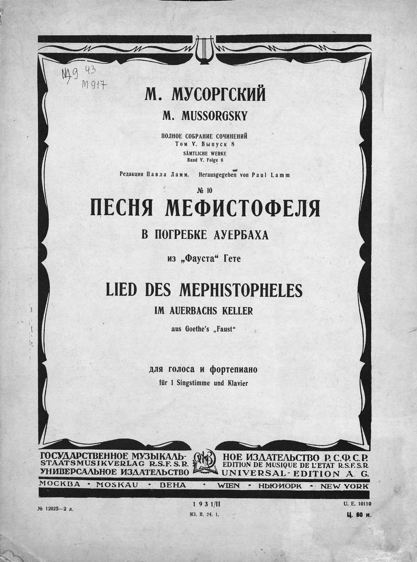 Песня Мефистофеля в погребке Ауербаха