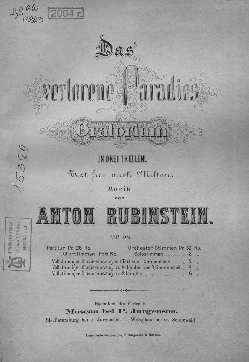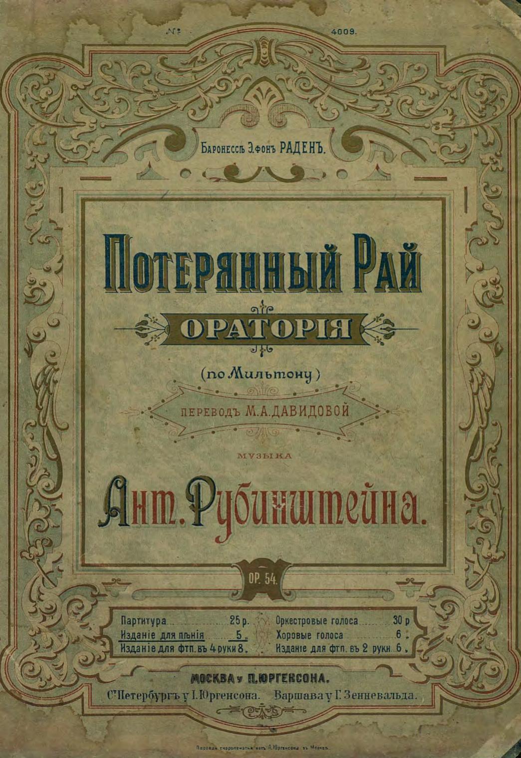 Перешедшие в общественное достояние материалы электронного фонда ЦГПБ им. В.В. Маяковского. Сведения о издательстве или типографии: изд. П. Юргенсона. Место издания: Москва