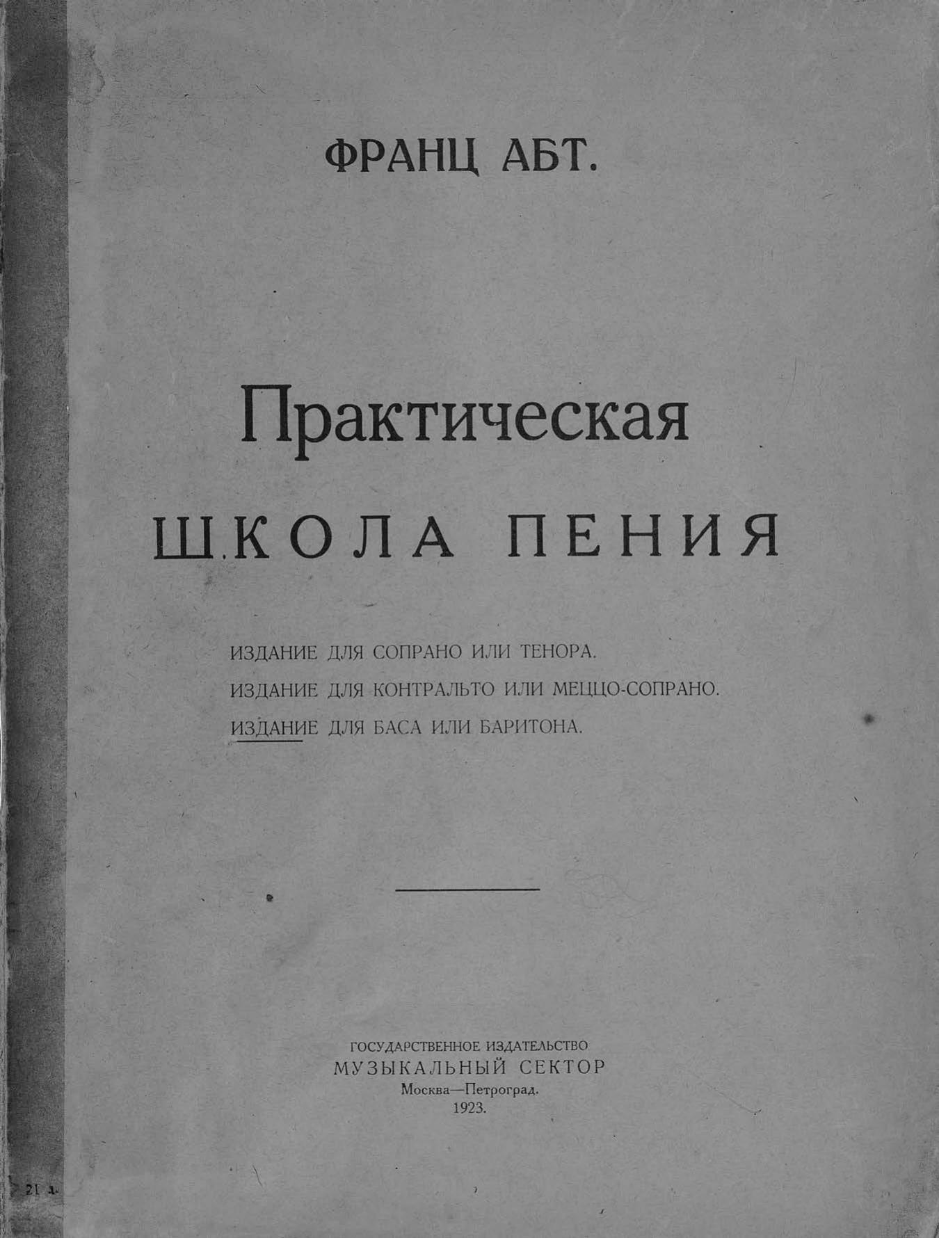 Перешедшие в общественное достояние материалы электронного фонда ЦГПБ им. В.В. Маяковского. Сведения о издательстве или типографии: Госиздат, Музсектор. Место издания: Москва