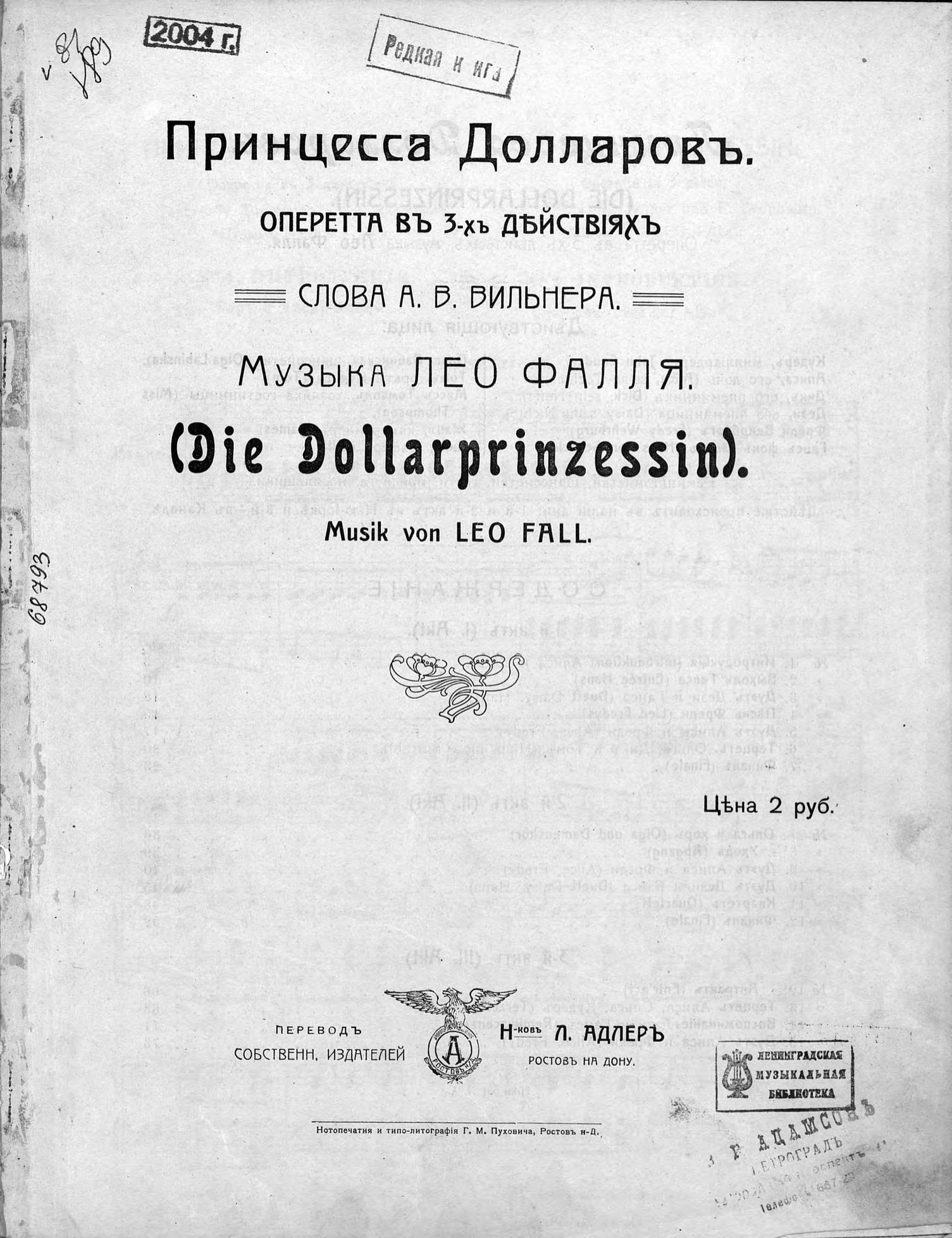 Перешедшие в общественное достояние материалы электронного фонда ЦГПБ им. В.В. Маяковского. Сведения о издательстве или типографии: Л. Адлер. Место издания: Ростов-на-Дону