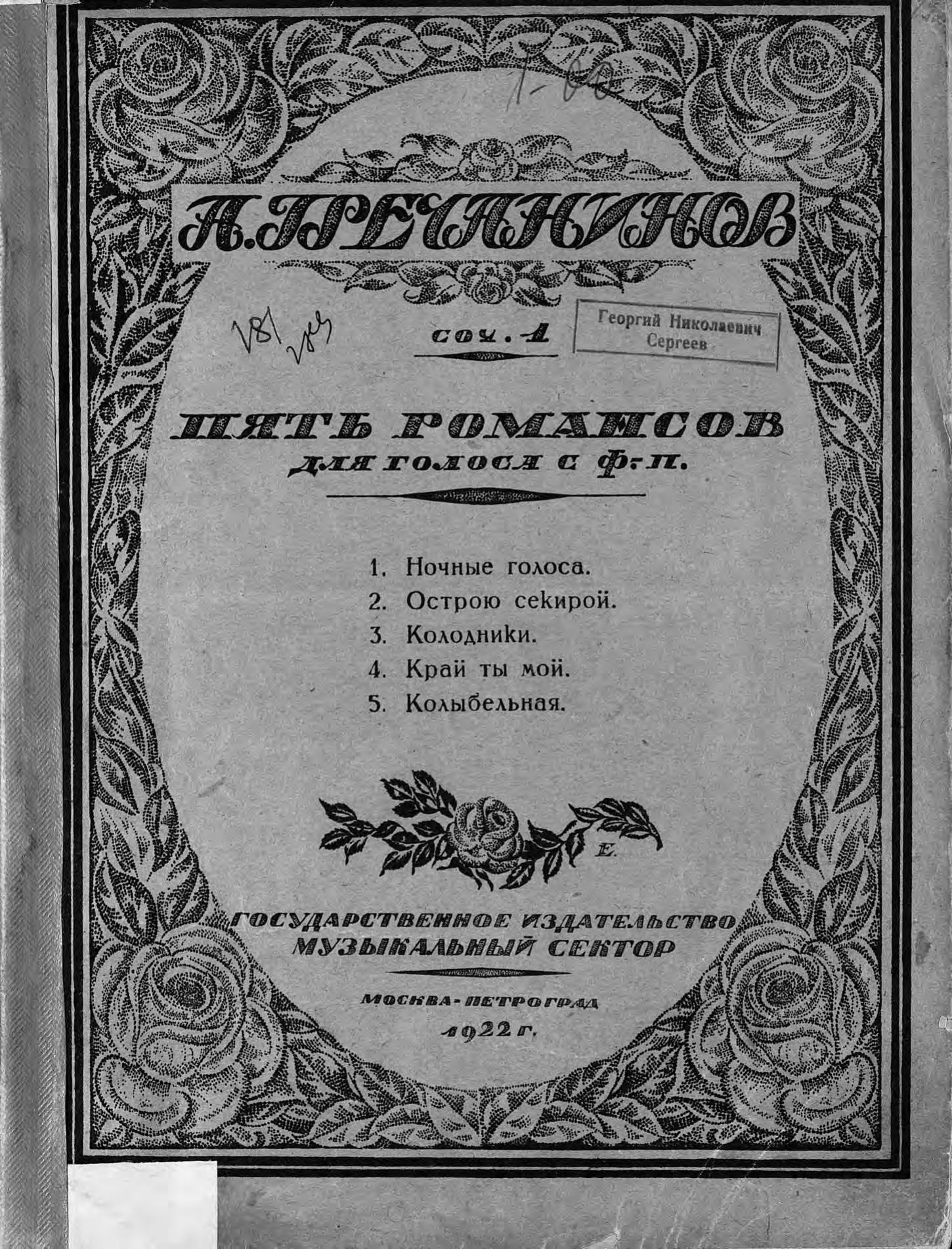 Пять романсов для голоса с фортепиано