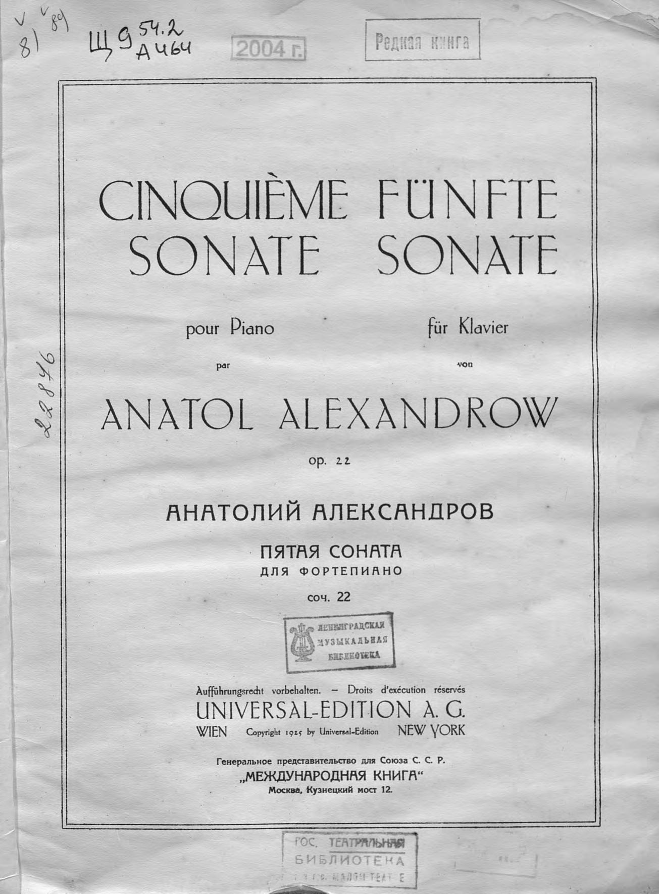 Пятая соната для фортепиано