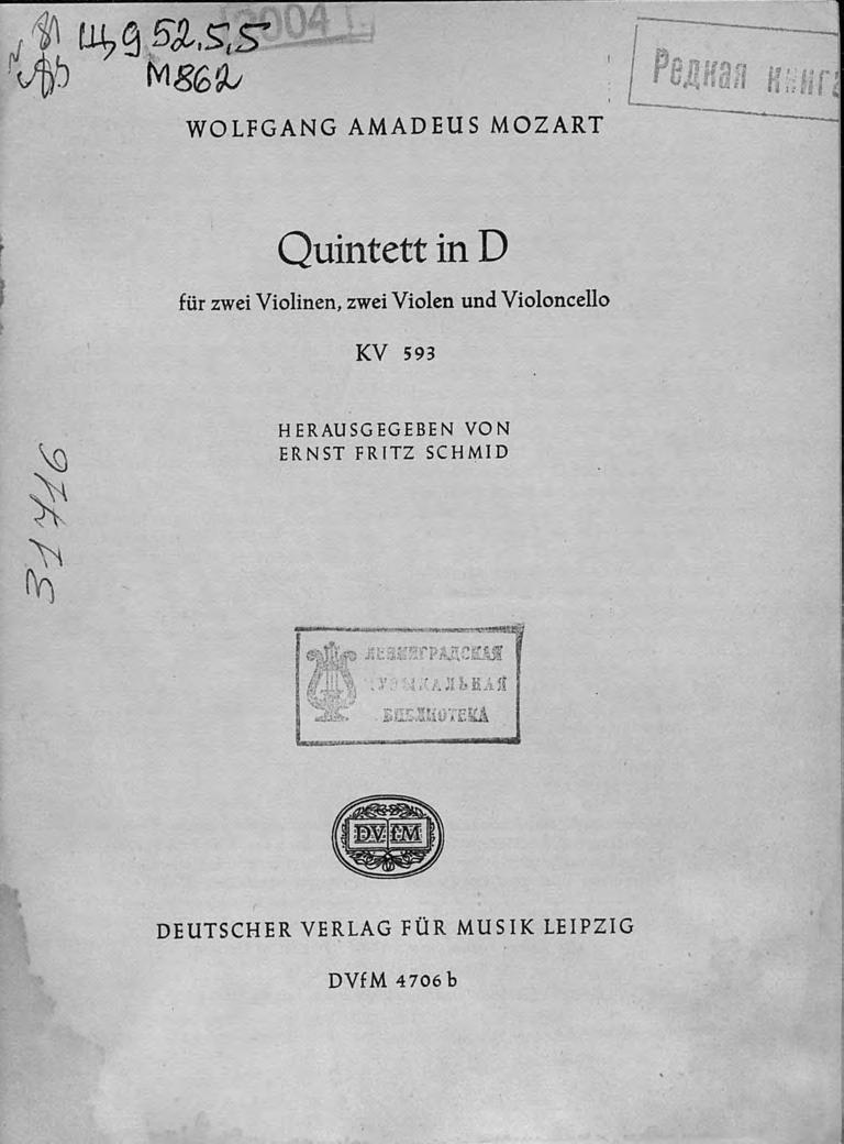 Quintett in D fur 2 Violinen, 2 Violen und Violoncello