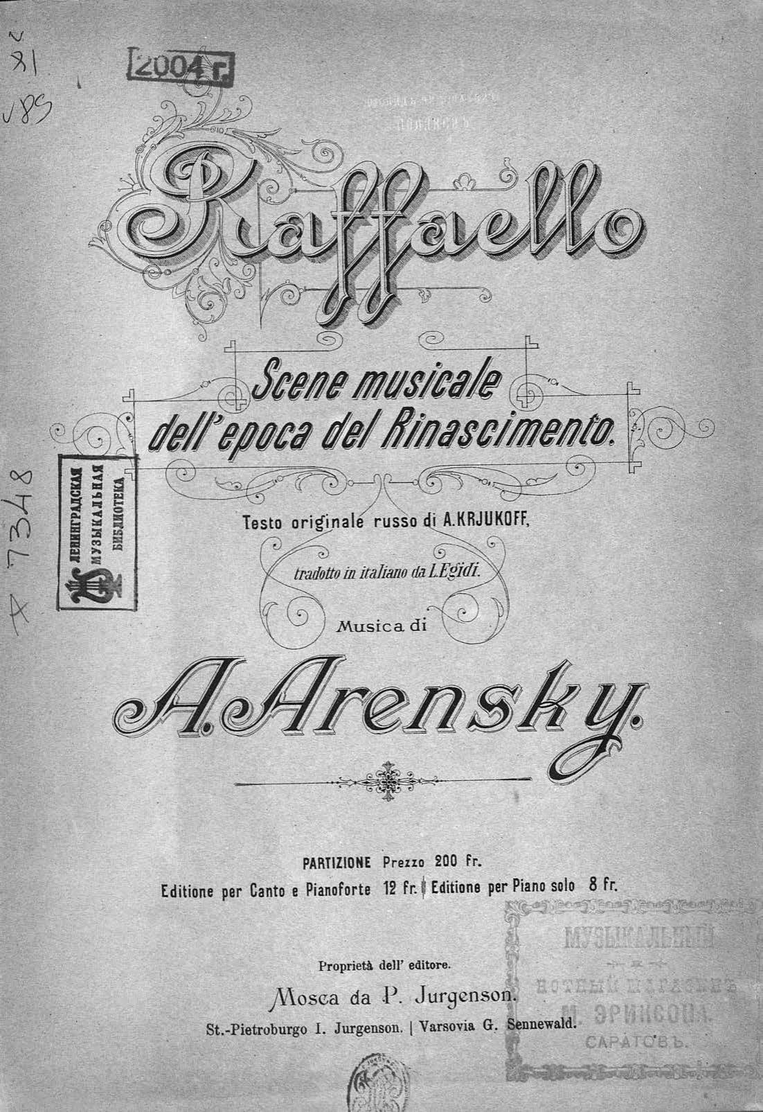 Перешедшие в общественное достояние материалы электронного фонда ЦГПБ им. В.В. Маяковского. Сведения о издательстве или типографии: P. Jurgenson. Место издания: Москва