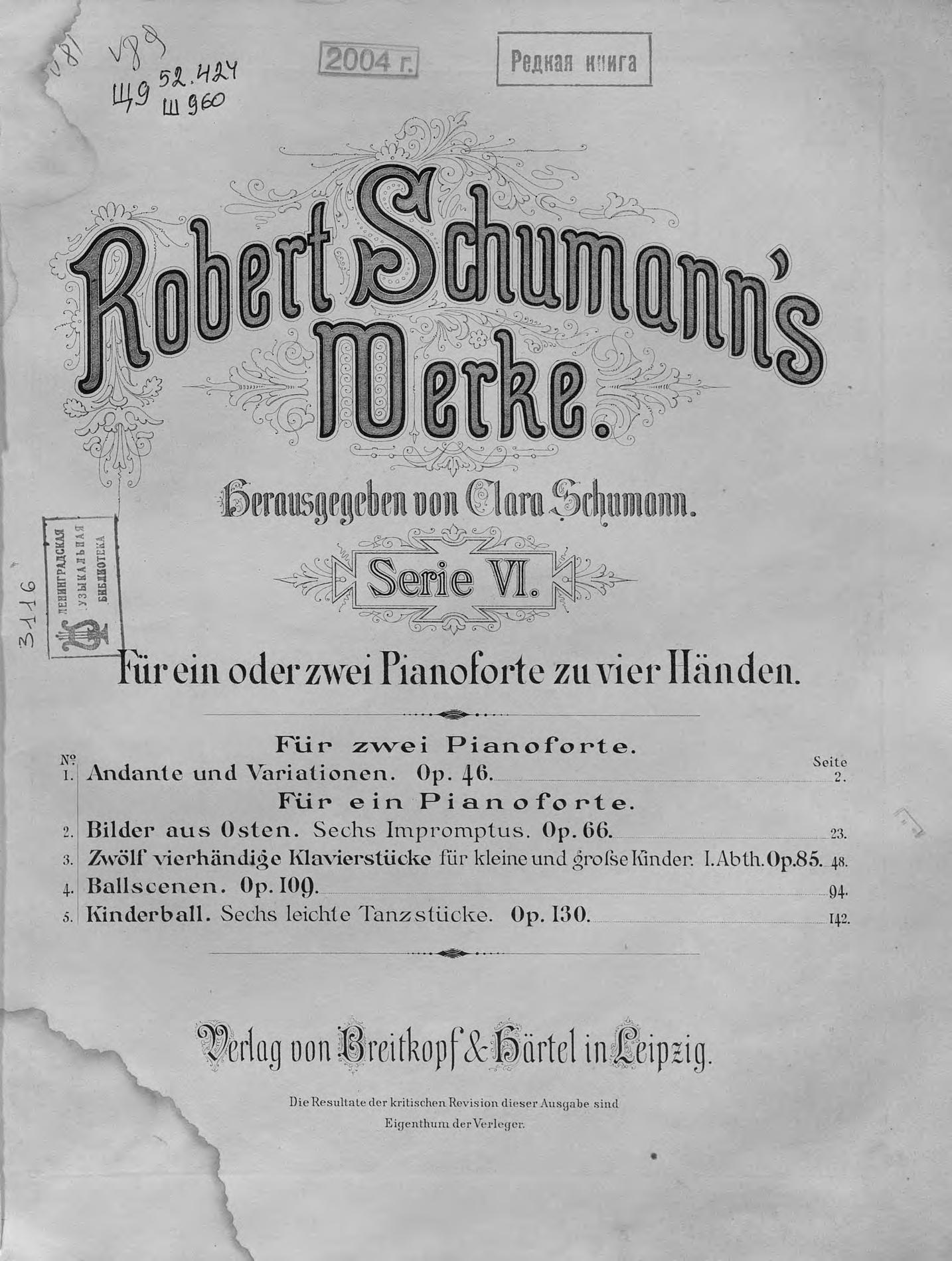 Перешедшие в общественное достояние материалы электронного фонда ЦГПБ им. В.В. Маяковского. Сведения о издательстве или типографии: Breitkopf & H?rtel. Место издания: Лейпциг