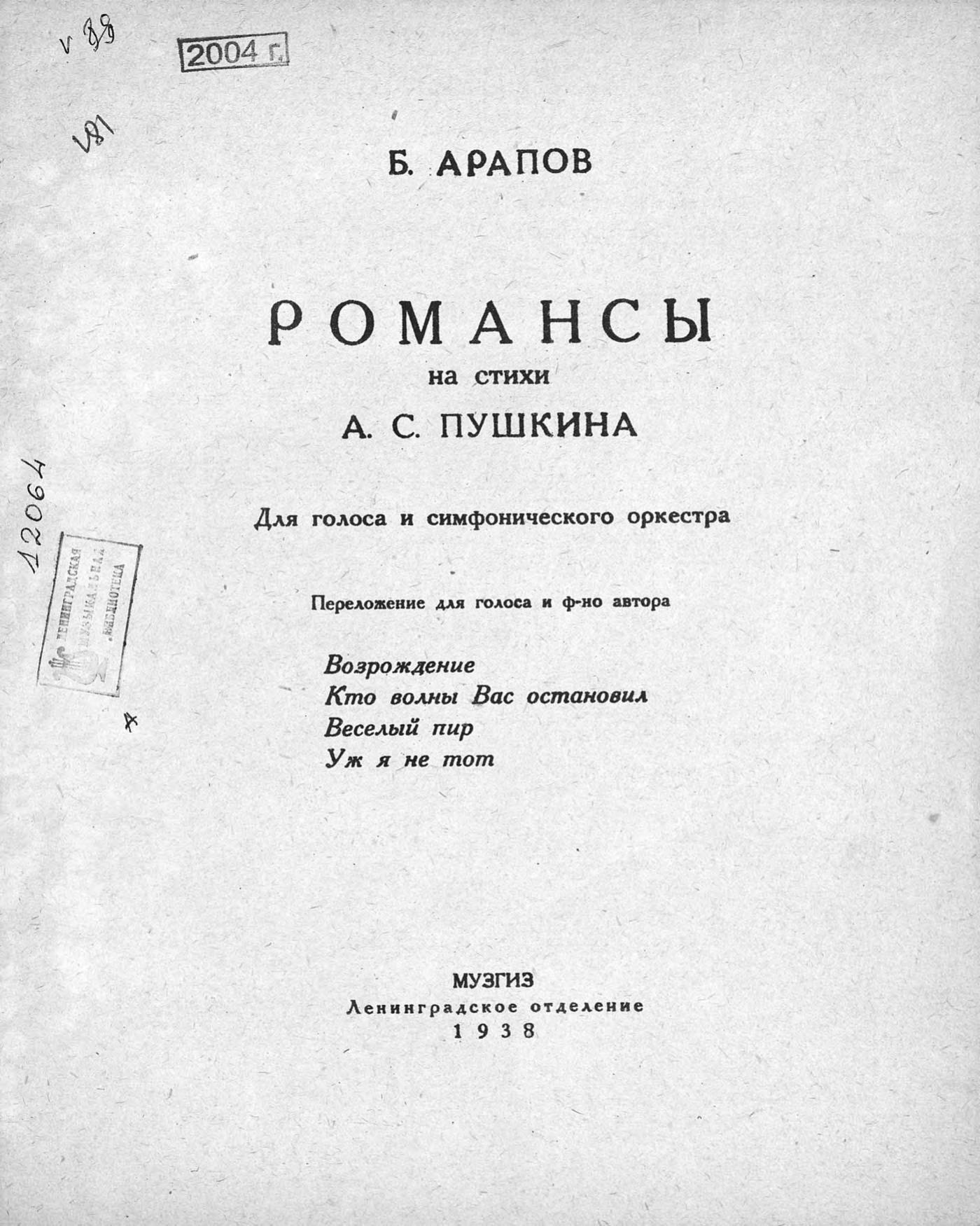 Перешедшие в общественное достояние материалы электронного фонда ЦГПБ им. В.В. Маяковского. Сведения о издательстве или типографии: Музгиз. Место издания: Ленинград