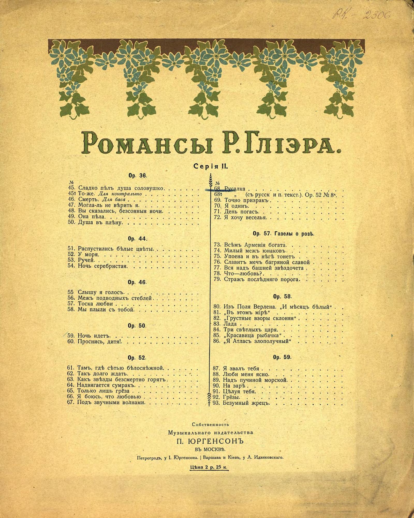 Перешедшие в общественное достояние материалы электронного фонда ЦГПБ им. В.В. Маяковского. Сведения о издательстве или типографии: П. Юргенсон. Место издания: Москва