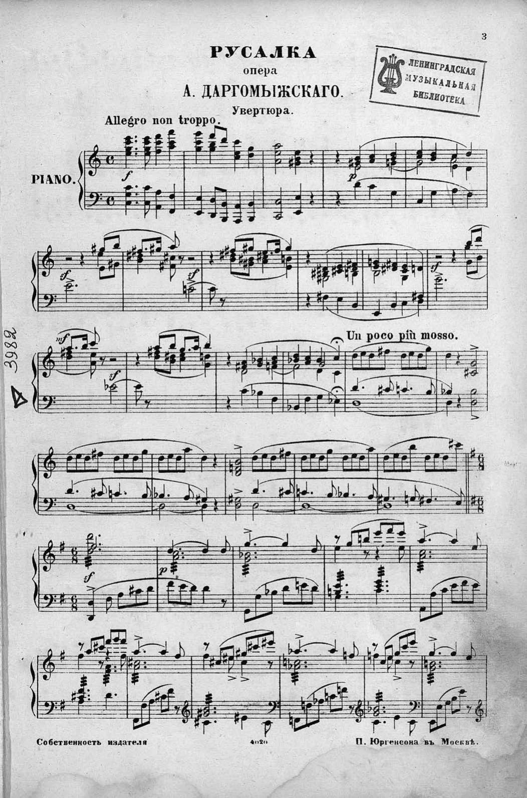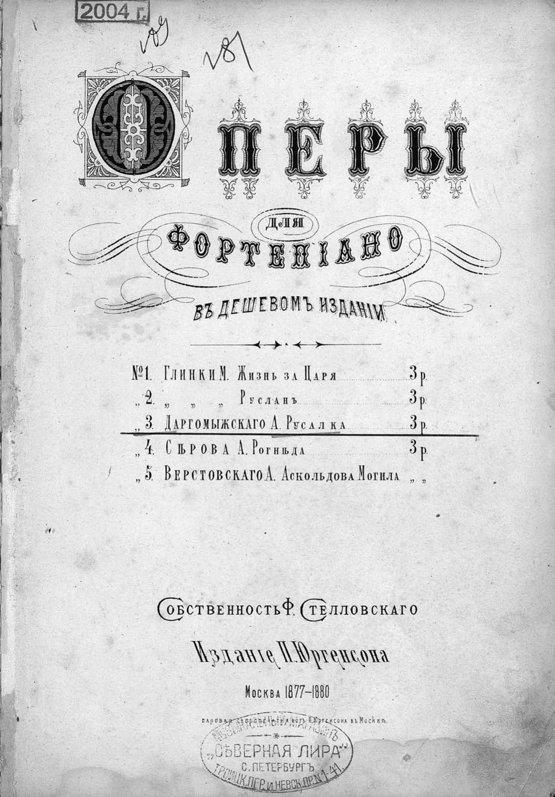 Перешедшие в общественное достояние материалы электронного фонда ЦГПБ им. В.В. Маяковского. Сведения о издательстве или типографии: изд. Юргенсона. Место издания: Москва