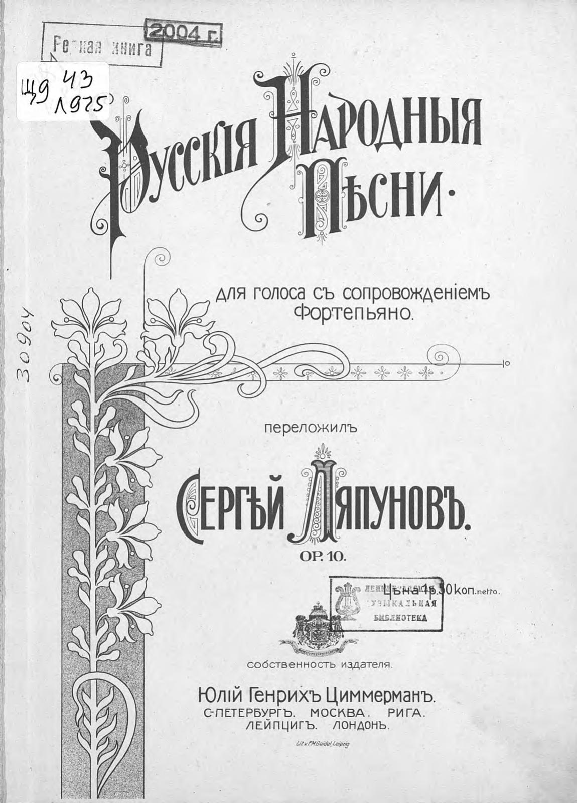 Русские народные песни для голоса [без указания характера] с сопровождением фортепиано
