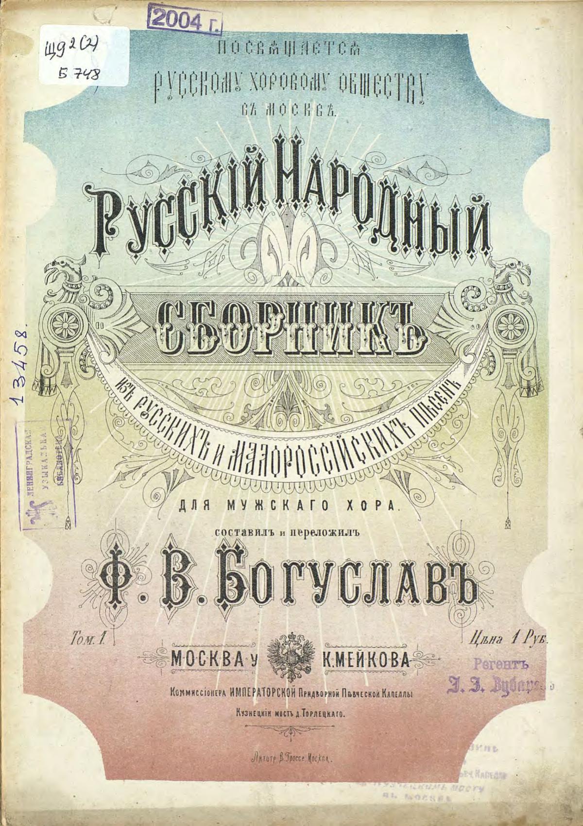 Русский народный сборник из русских и малороссийских песен для мужского хора