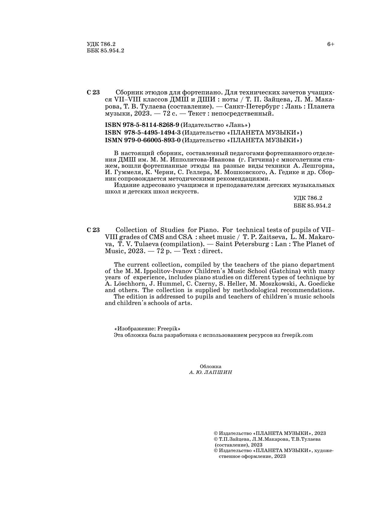 The current collection, compiled by the teachers of the piano department of the M. M. Ippolitov-Ivanov Children's Music School (Gatchina) with many years of experience, includes piano studies on different types of technique by C. Czerny, H. Bertini, S. Heller, L. Schytte and others. The collection is supplied by methodological recommendations.