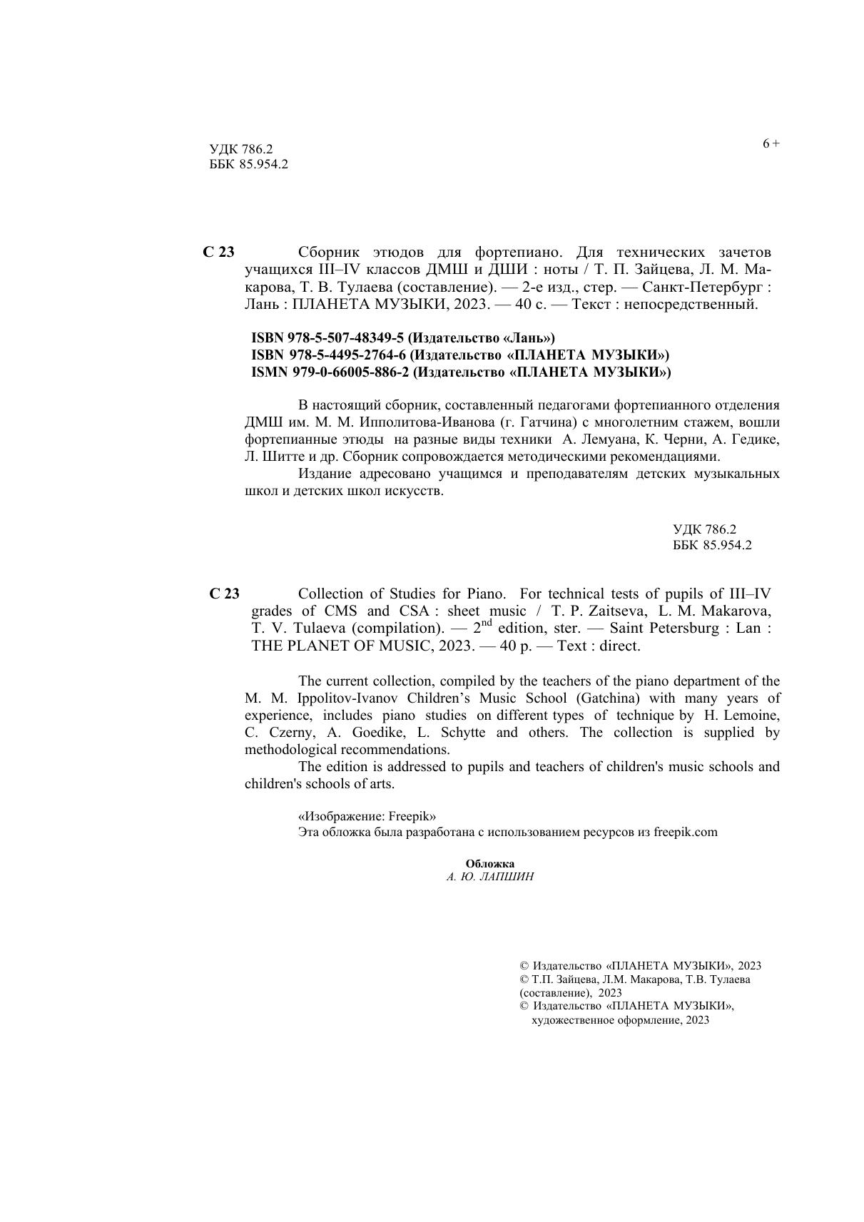 В настоящий сборник, составленный педагогами фортепианного отделения ДМШ им. М. М. Ипполитова-Иванова (г. Гатчина) с многолетним стажем, вошли фортепианные этюды на разные виды техники А. Лемуана, К. Черни, А. Гедике, Л. Шитте и др. Сборник сопровождается методическими рекомендациями. Издание адресовано учащимся и преподавателям детских музыкальных школ и детских школ искусств. The current collection, compiled by the teachers of the piano department of the M. M. Ippolitov-Ivanov Children's Music School (Gatchina) with many years of experience, includes piano studies on different types of technique by H. Lemoine, C. Czerny, A. Goedike, L. Schytte and others. The collection is supplied by methodological recommendations. The edition is addressed to pupils and teachers of children's music schools. and children's schools of arts.