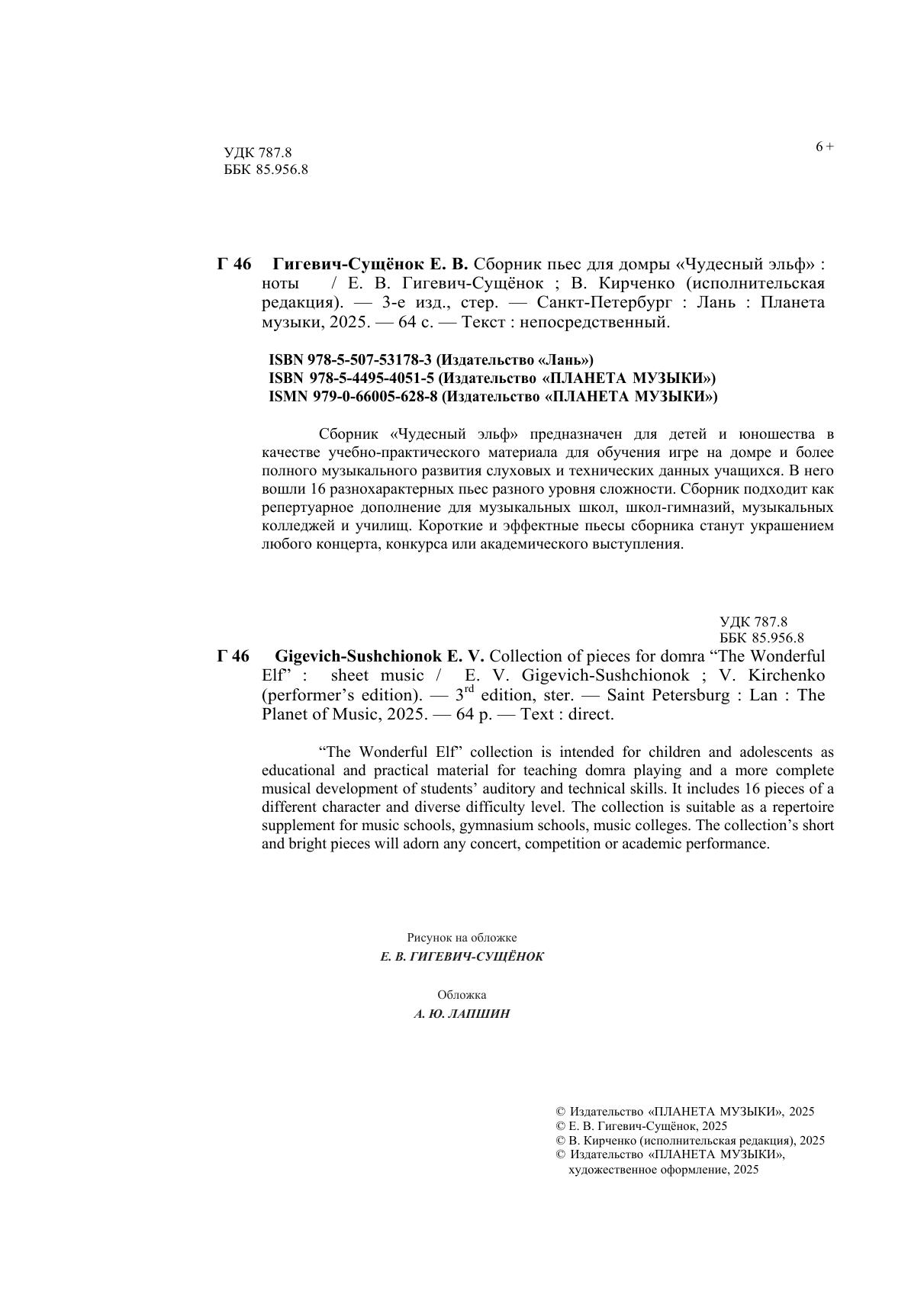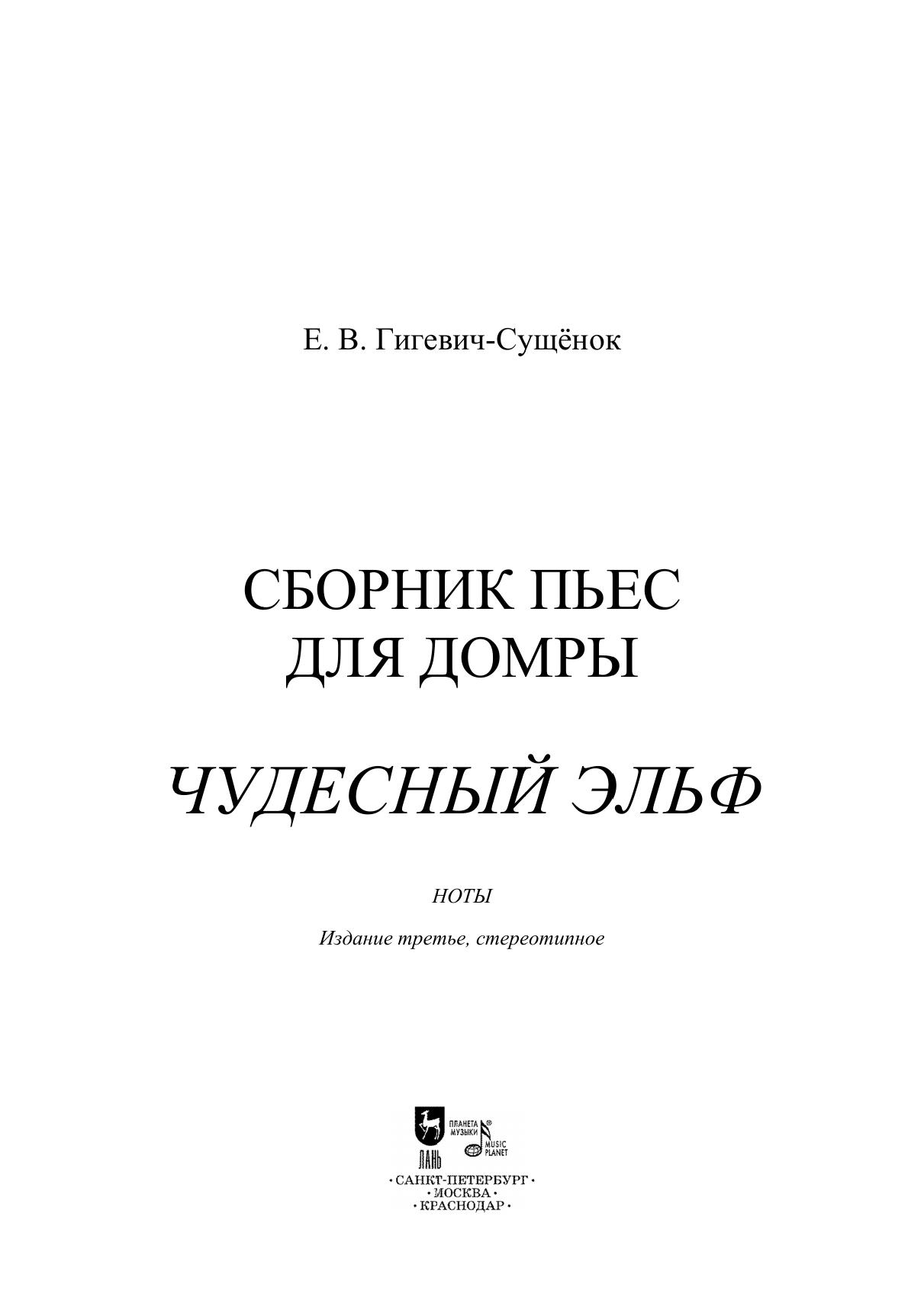 Сборник “Чудесный эльф” предназначен для детей и юношества в качестве учебно-практического материала для обучения игре на домре и более полного музыкального развития слуховых и технических данных учащихся. В него вошли 16 разнохарактерных пьес разного уровня сложности. Сборник подходит как репертуарное дополнение для музыкальных школ, школ-гимназий, музыкальных колледжей и училищ. Короткие и эффектные пьесы сборника станут украшением любого концерта, конкурса или академического выступления .