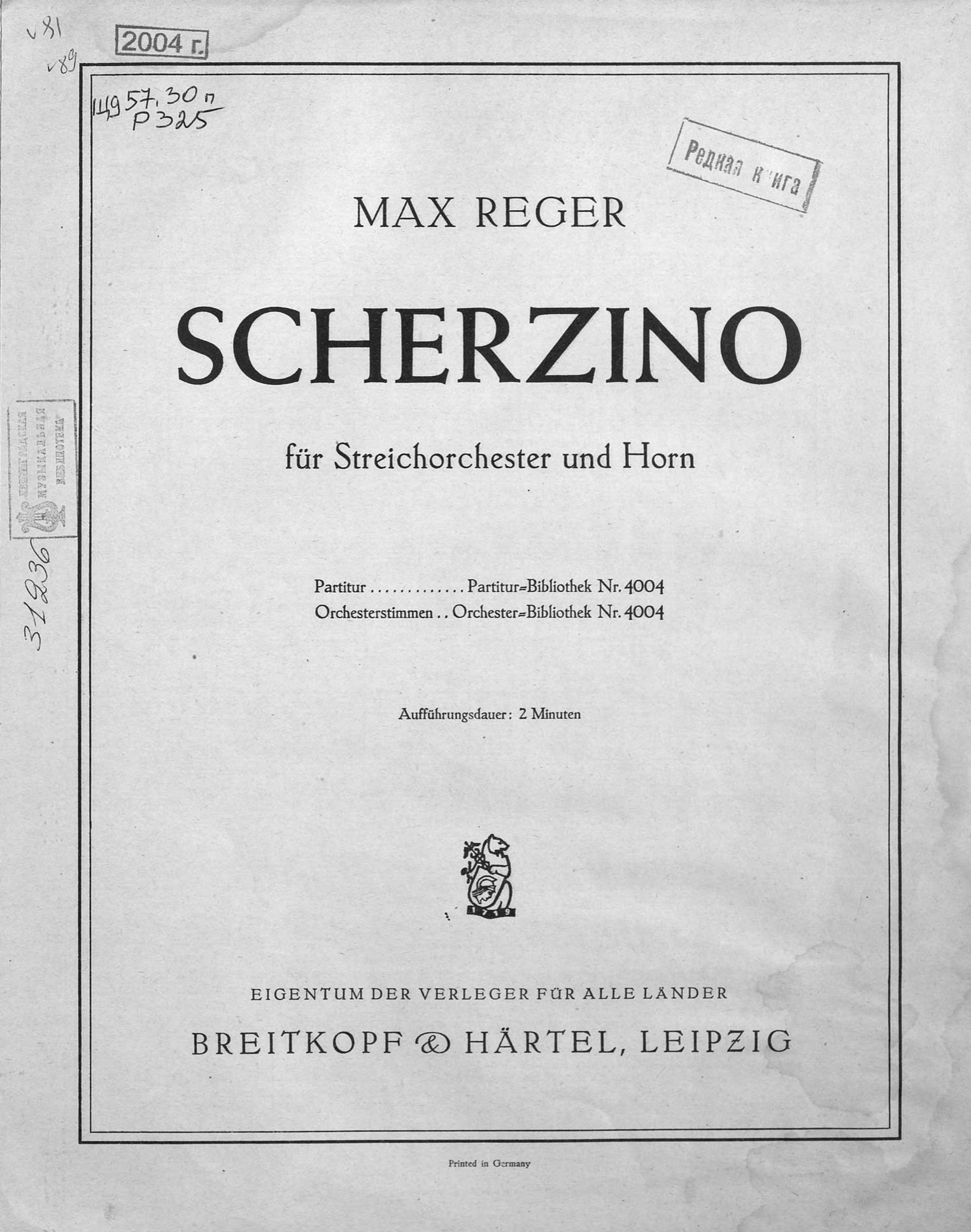Перешедшие в общественное достояние материалы электронного фонда ЦГПБ им. В.В. Маяковского. Сведения о издательстве или типографии: Breitkopf & H?rtel. Место издания: Лейпциг
