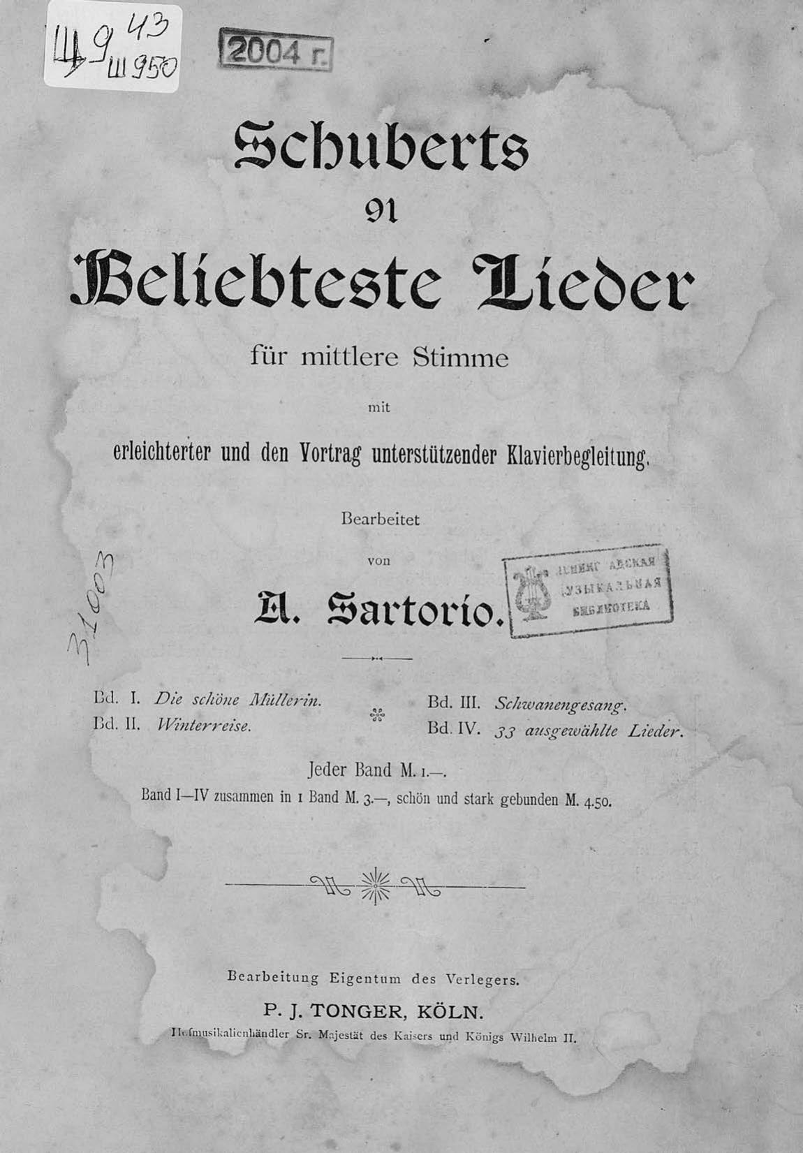 Schubert 91 beliebteste Lieder fur mittlere Stimme mit erleichterter u. den Vortrag untestutzender Klavierbegleitung