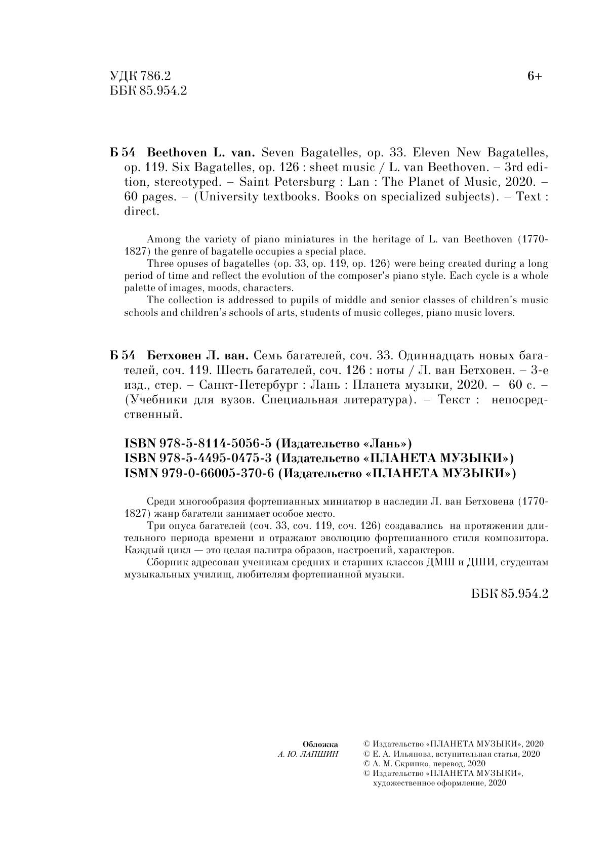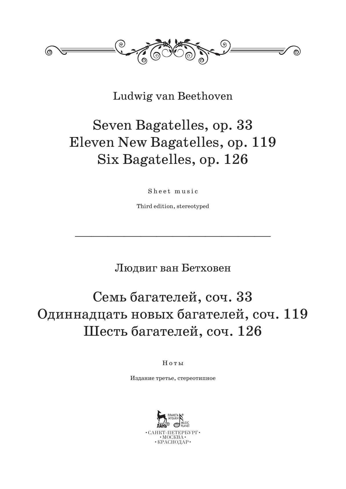 Семь багателей, соч. 33. Одиннадцать новых багателей, соч. 119. Шесть багателей, соч. 126.