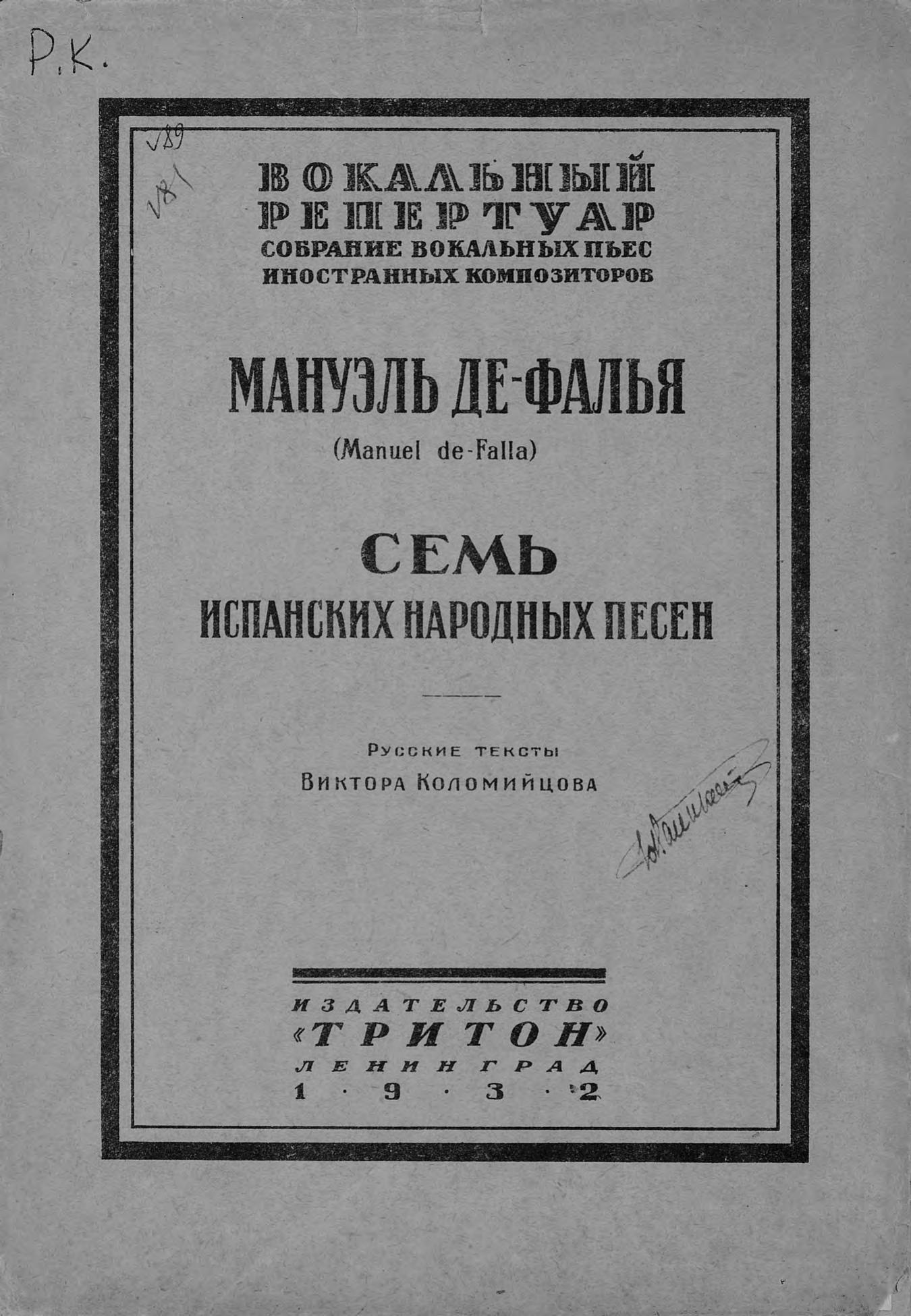 Перешедшие в общественное достояние материалы электронного фонда ЦГПБ им. В.В. Маяковского. Сведения о издательстве или типографии: Тритон. Место издания: Ленинград