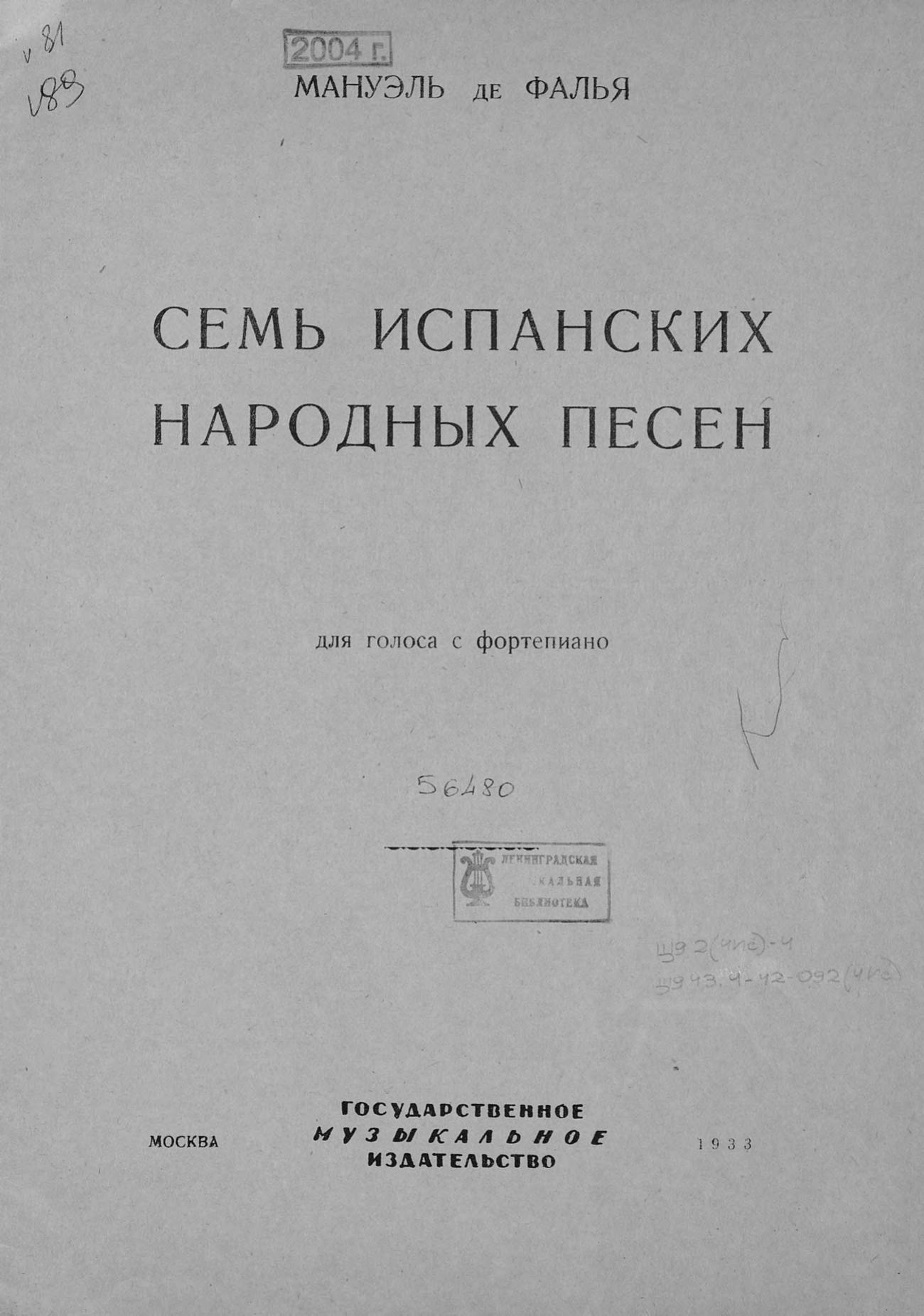 Перешедшие в общественное достояние материалы электронного фонда ЦГПБ им. В.В. Маяковского. Сведения о издательстве или типографии: Музгиз. Место издания: Москва