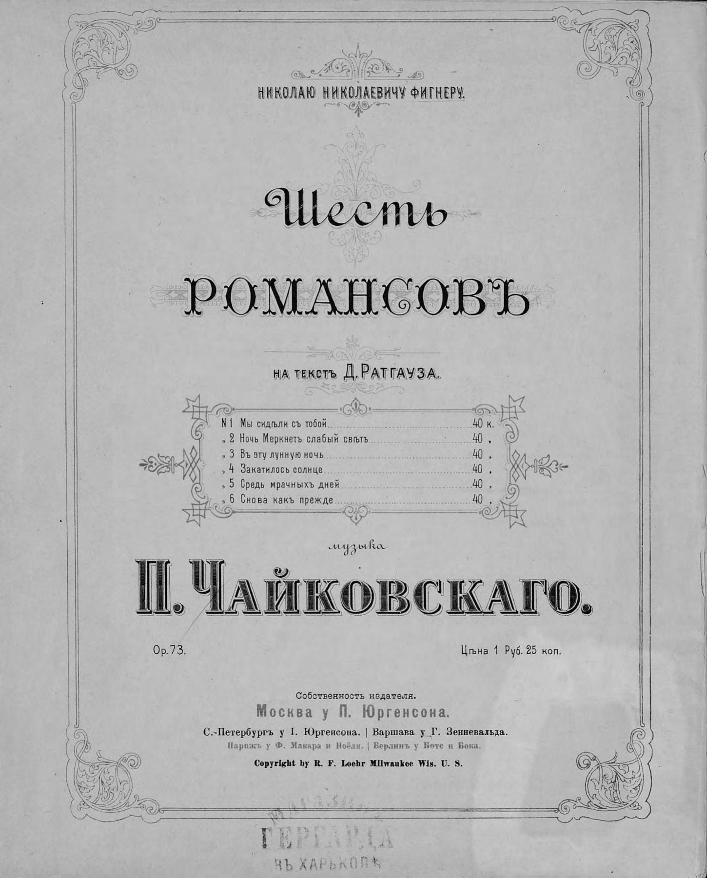 Перешедшие в общественное достояние материалы электронного фонда ЦГПБ им. В.В. Маяковского. Сведения о издательстве или типографии: П. Юргенсон. Место издания: Москва