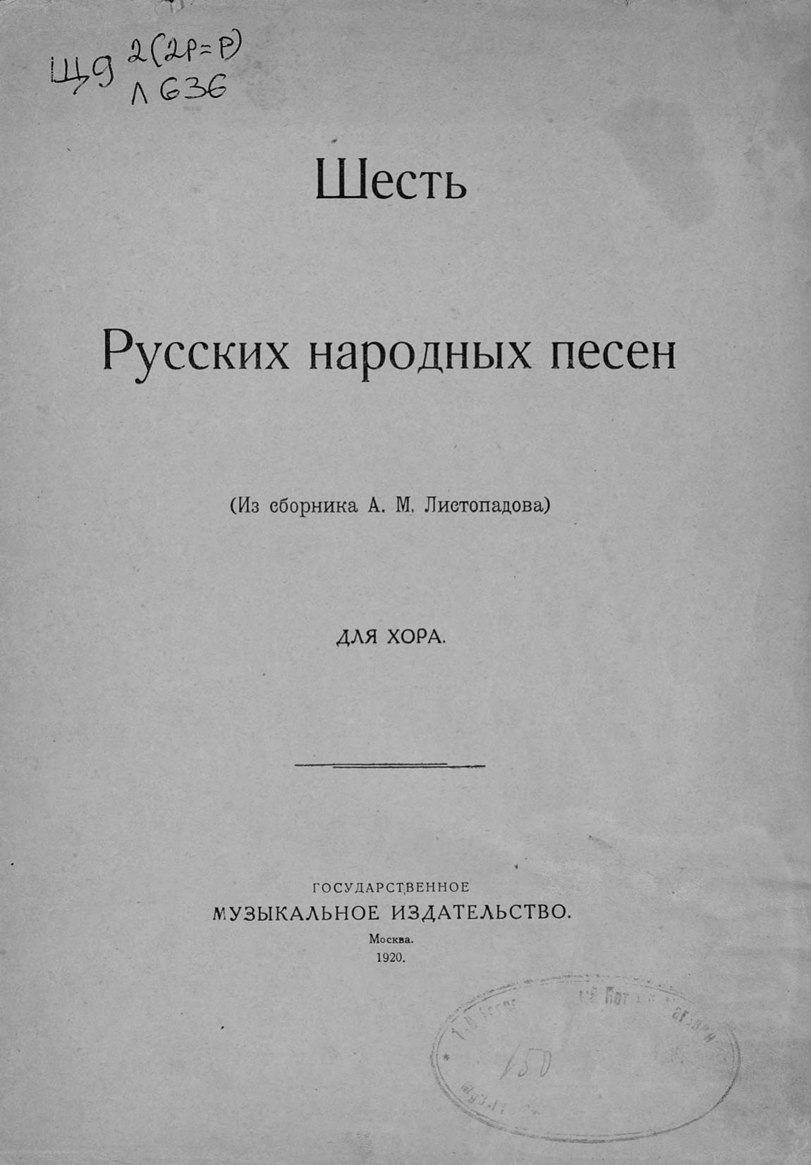 Перешедшие в общественное достояние материалы электронного фонда ЦГПБ им. В.В. Маяковского. Сведения о издательстве или типографии: Музгиз. Место издания: Москва