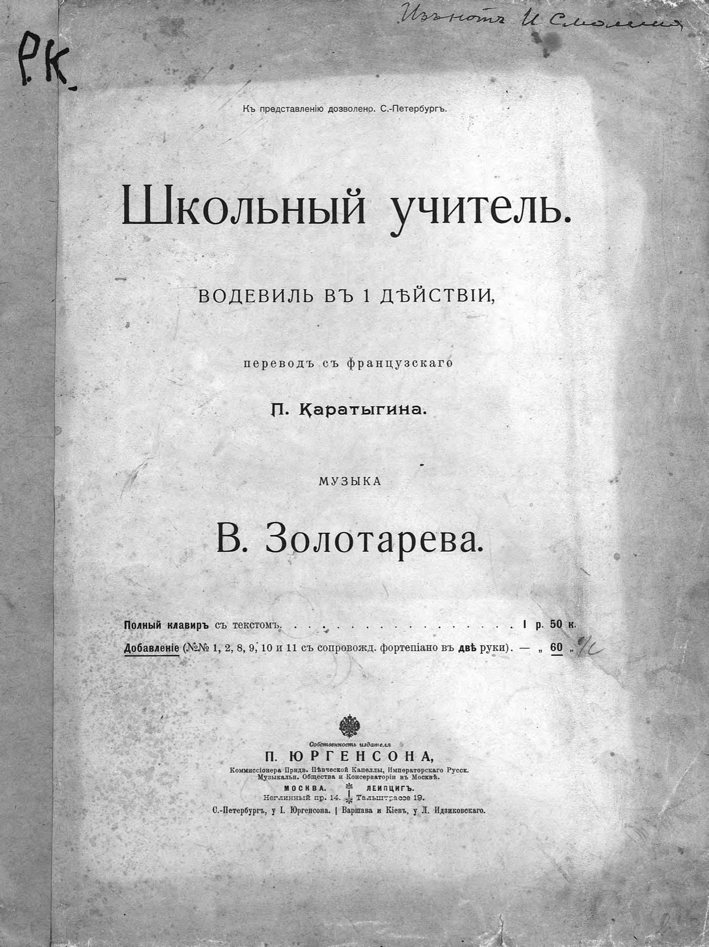Перешедшие в общественное достояние материалы электронного фонда ЦГПБ им. В.В. Маяковского. Сведения о издательстве или типографии: изд. П. Юргенсона. Место издания: Москва