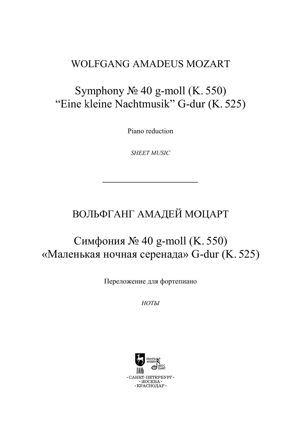 Симфония № 40 g-moll. K. 550. «Маленькая ночная серенада» g-dur. K. 525. Переложение для фортепиано
