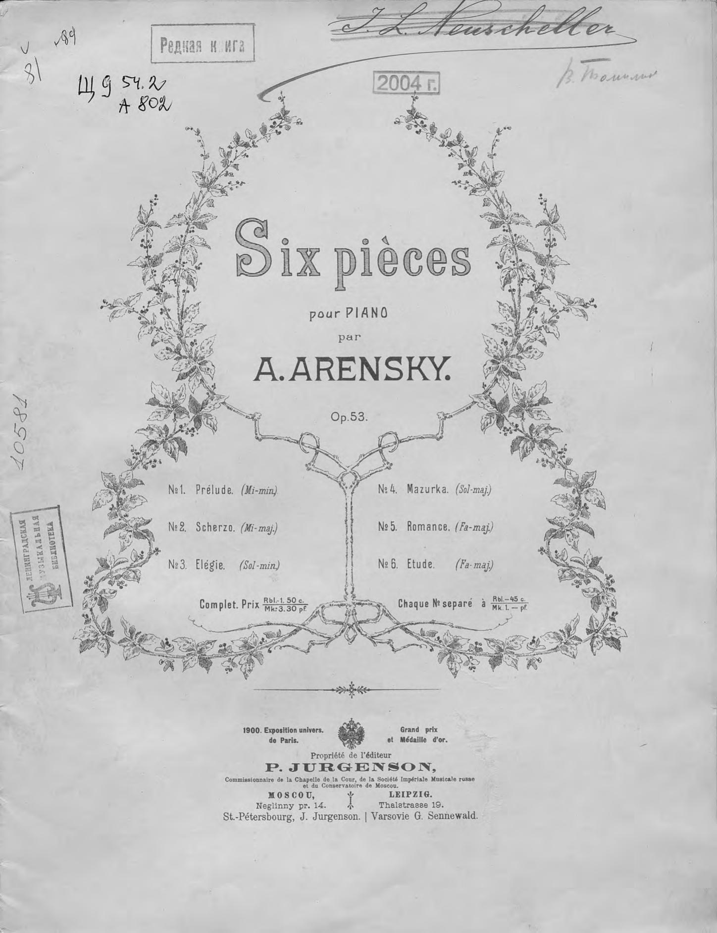 Six pieces pour piano par A. Arensky