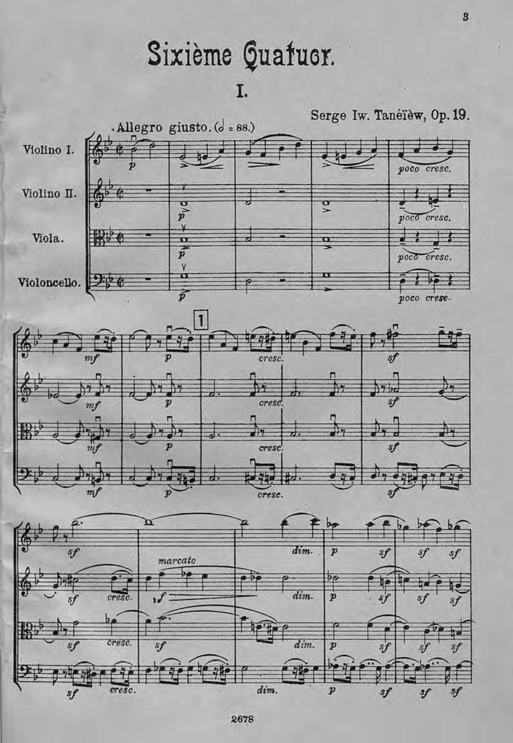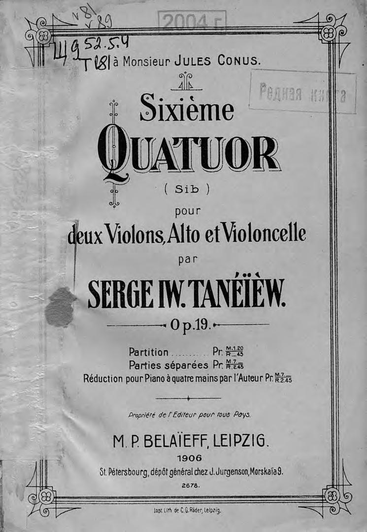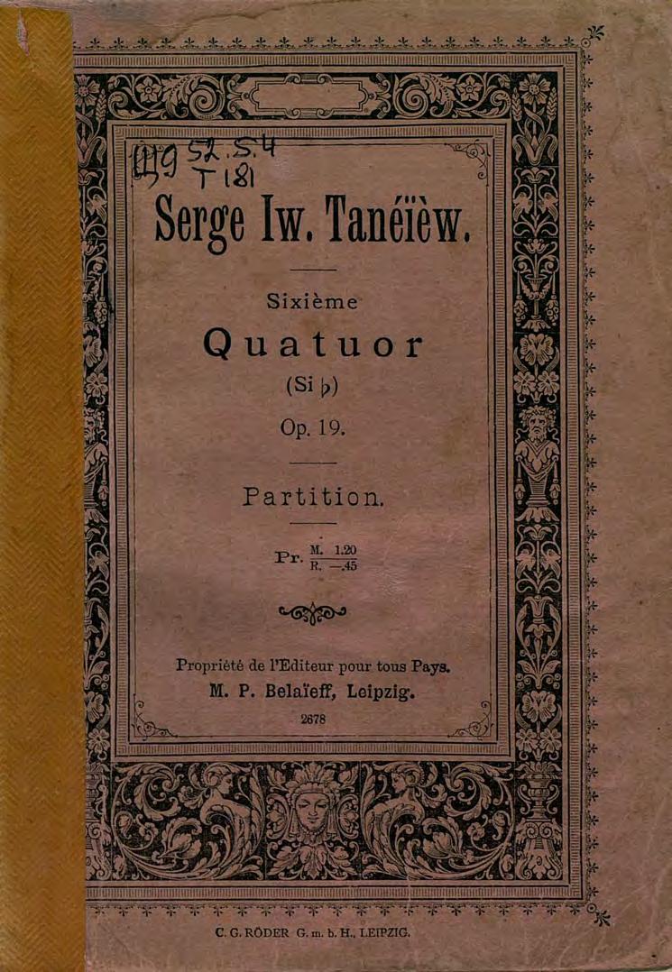 Sixieme Quatuor (Sib.) pour 2 Violons, Alto et Violoncelle par S. Taneiew