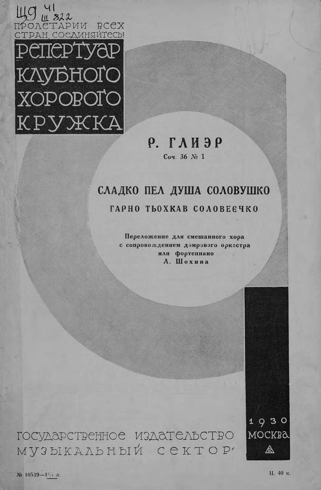 Перешедшие в общественное достояние материалы электронного фонда ЦГПБ им. В.В. Маяковского. Сведения о издательстве или типографии: Госиздат, Музсектор. Место издания: Москва