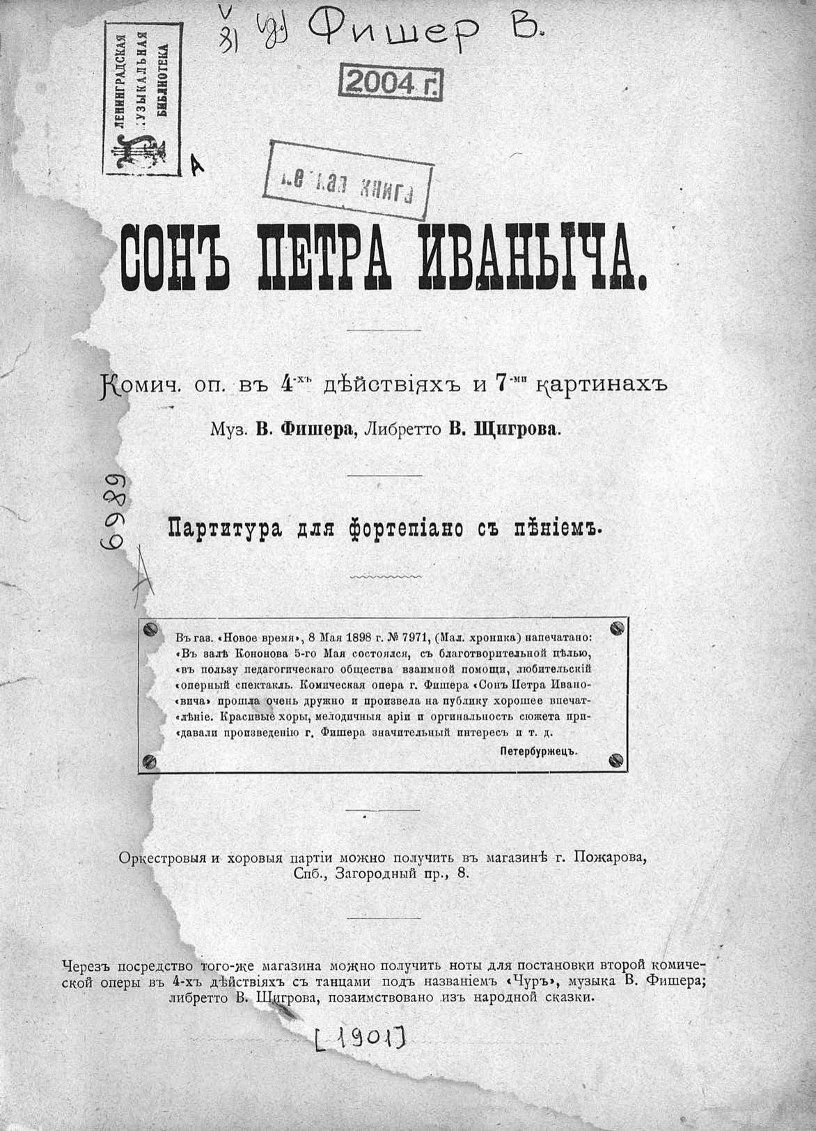 Перешедшие в общественное достояние материалы электронного фонда ЦГПБ им. В.В. Маяковского. Сведения о издательстве или типографии: Г. П. Пожаров. Место издания: Санкт-Петербург