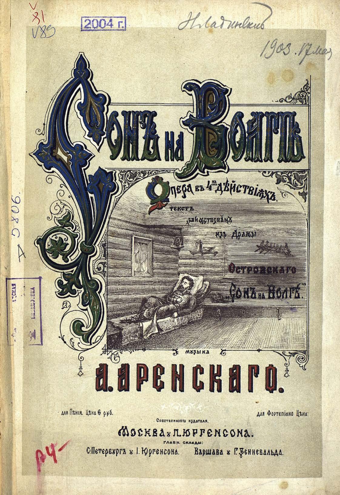 Перешедшие в общественное достояние материалы электронного фонда ЦГПБ им. В.В. Маяковского. Сведения о издательстве или типографии: П. Юргенсон. Место издания: Москва