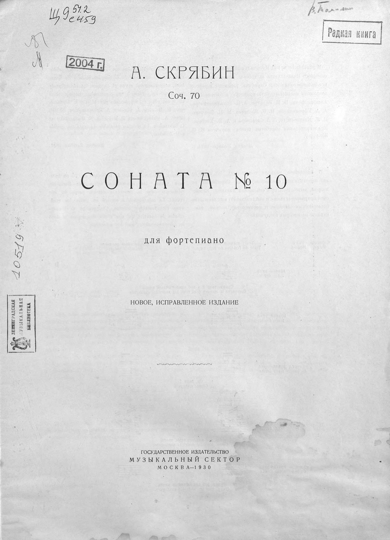 Соната № 10 для фортепиано