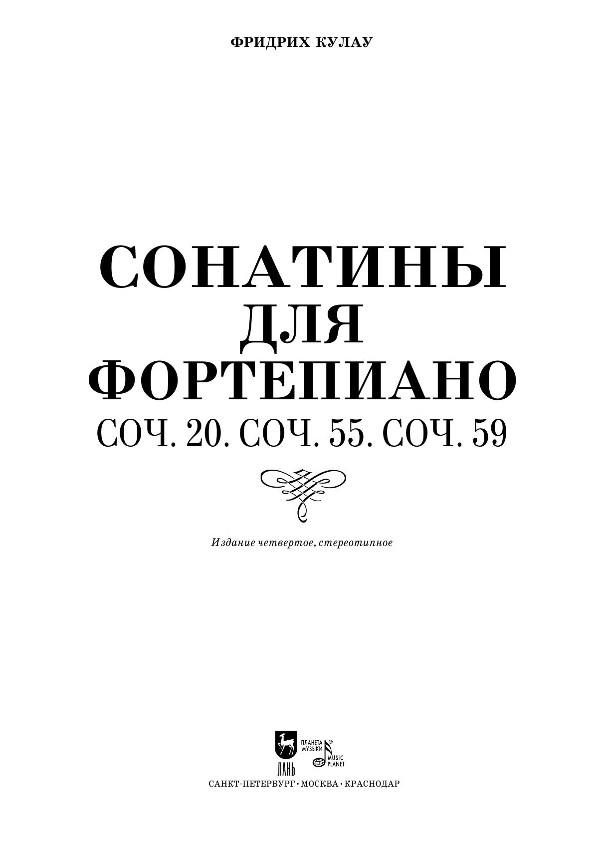 Сонатины для фортепиано. Соч. 20. Соч. 55. Соч. 59