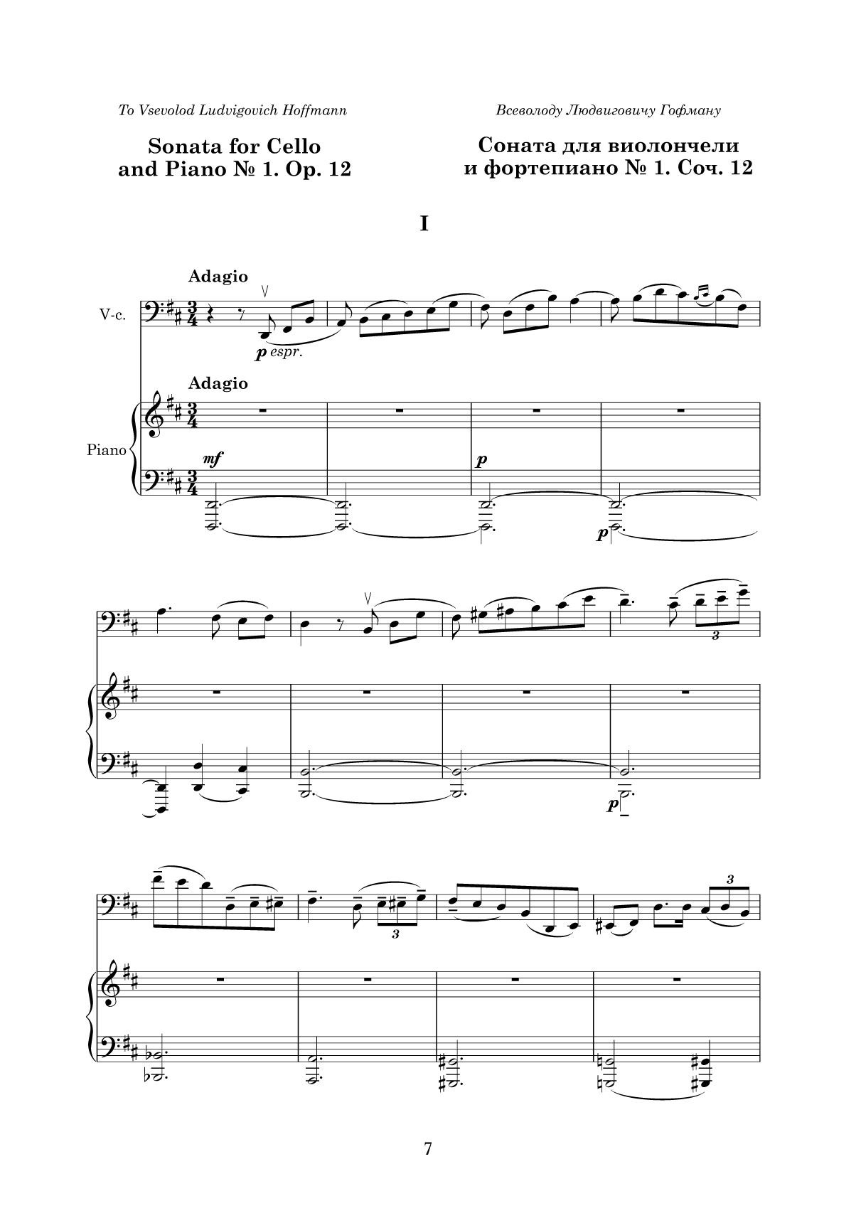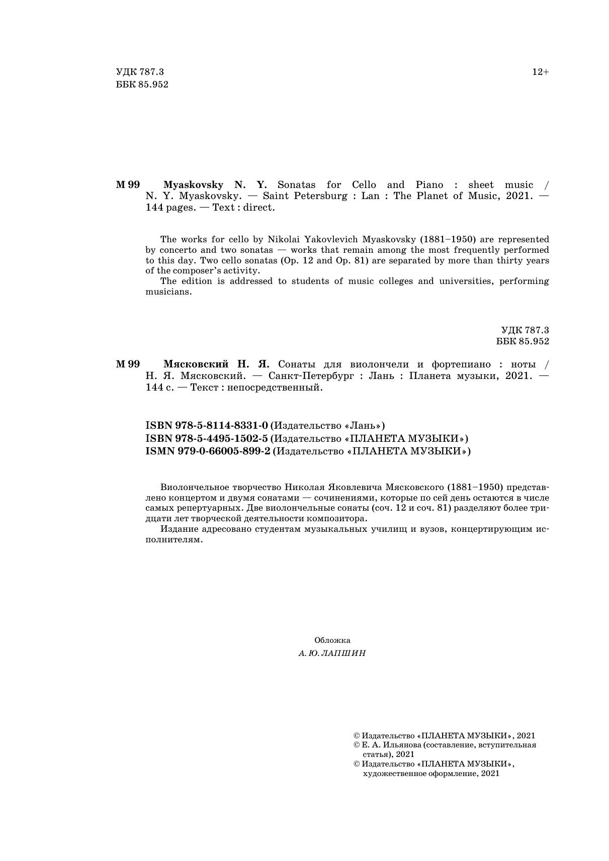 The works for cello by Nikolai Yakovlevich Myaskovsky (1881–1950) are represented by concerto and two sonatas — works that remain among the most frequently performed to this day. Two cello sonatas (Op. 12 and Op. 81) are separated by more than thirty years of the composer’s activity.