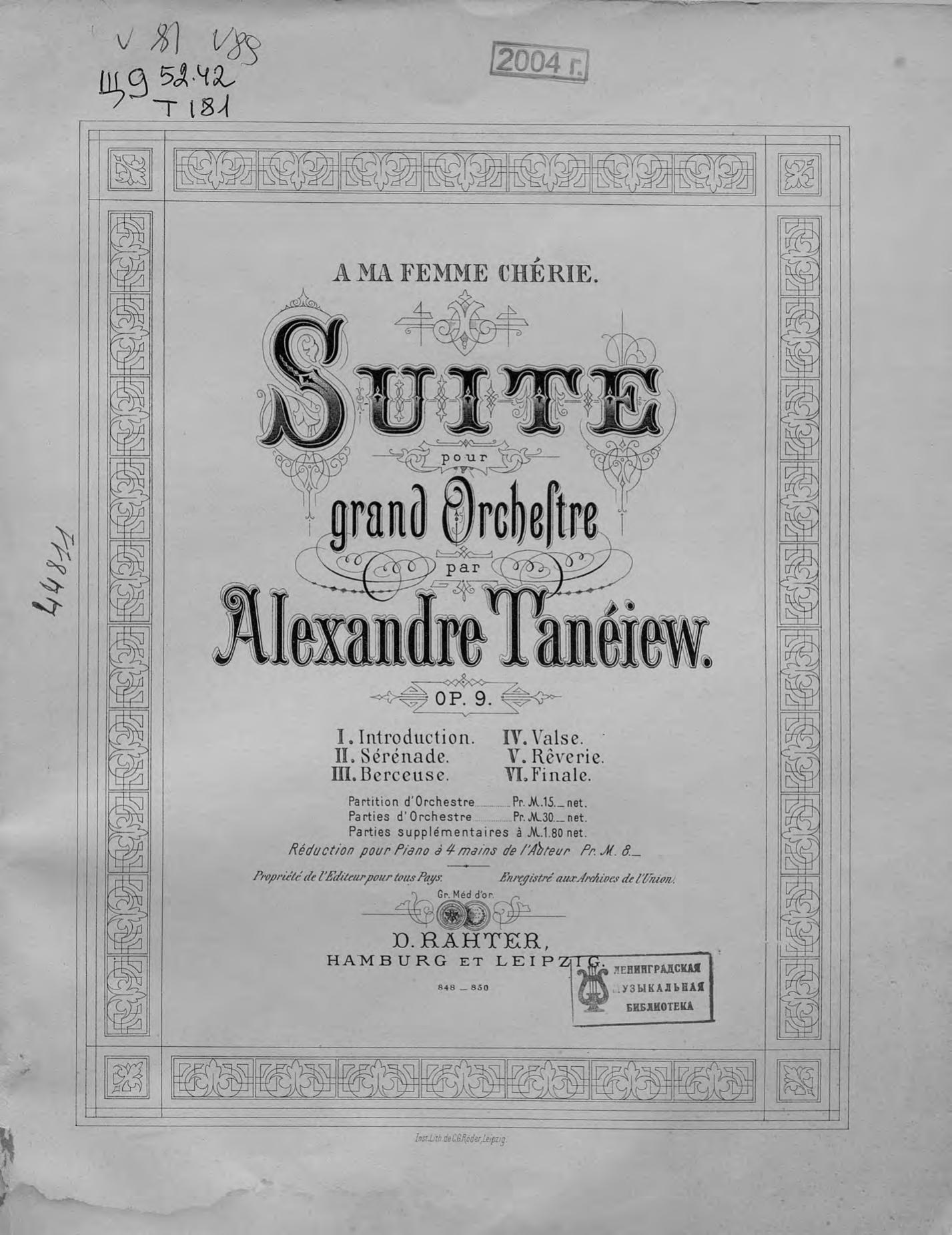 Suite pour grand Orchestre par Alexandre Taneiew