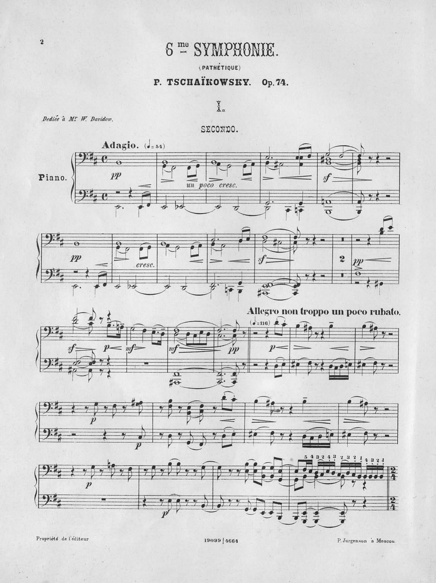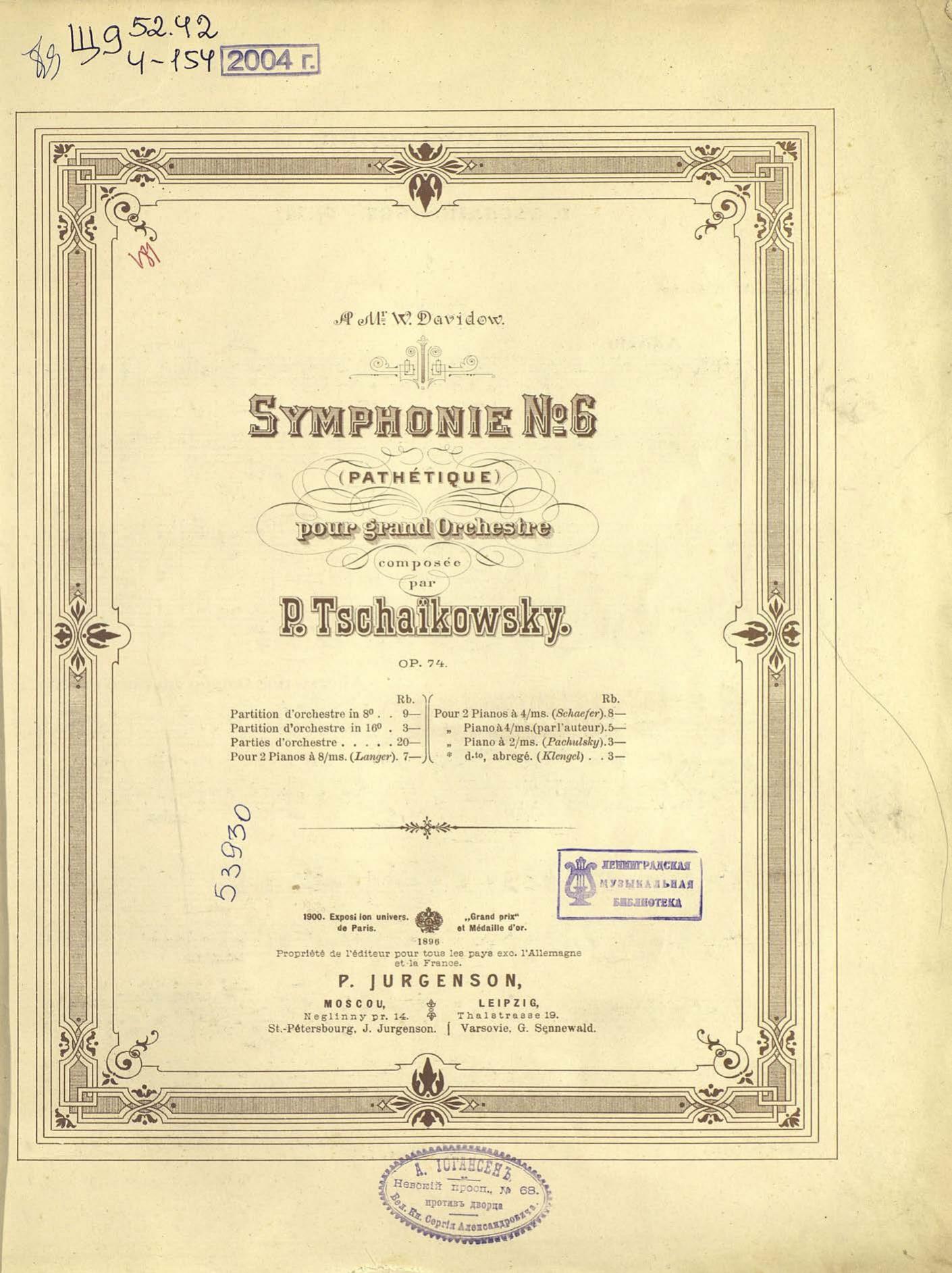 Symphonie № 6 (Pathetique) pour grand orchestre, сomp. par P. Tschaikowsky