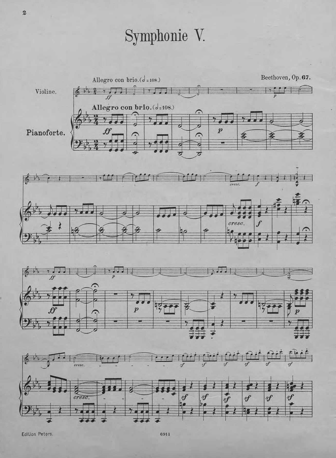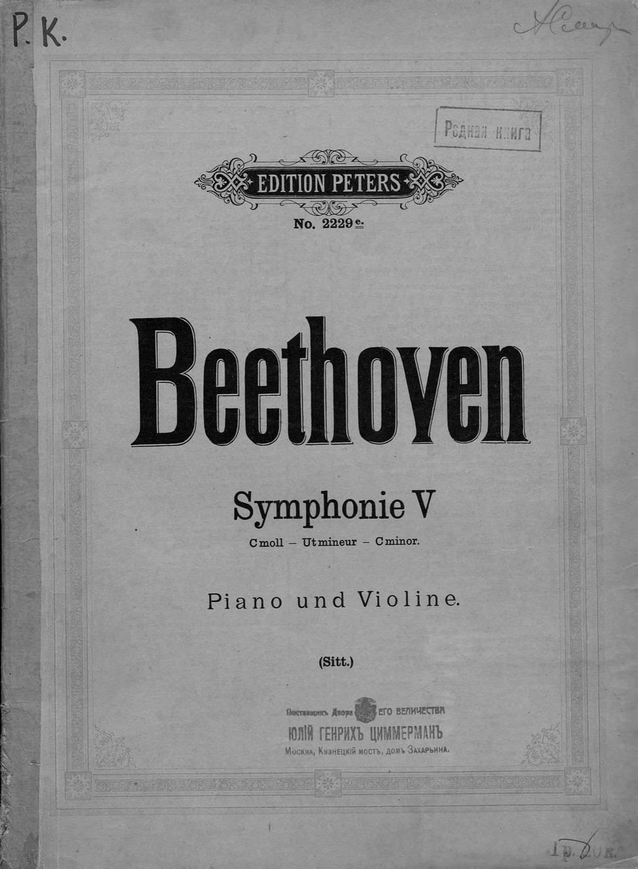 Symphonie 5 fur pianoforte und violine