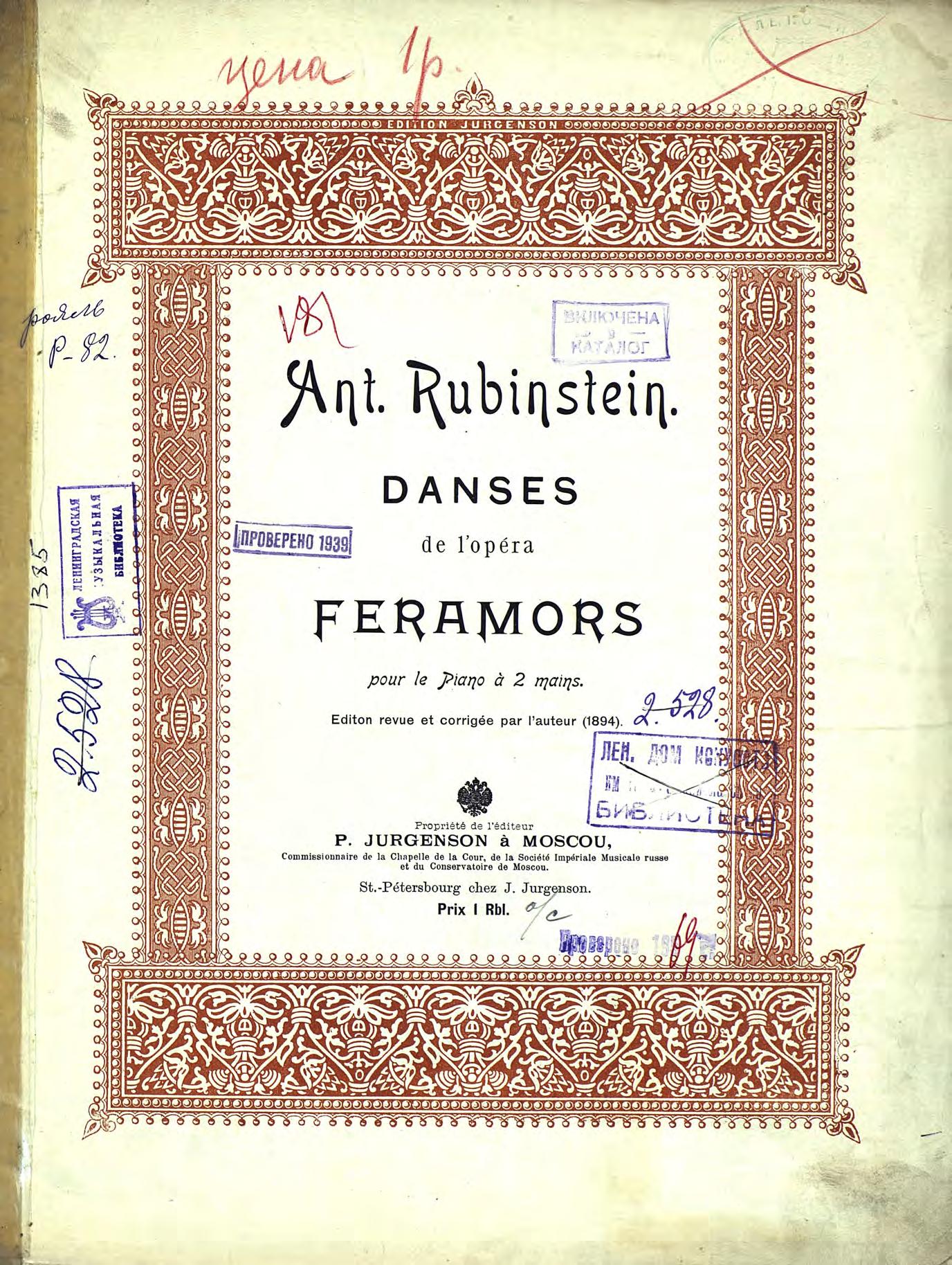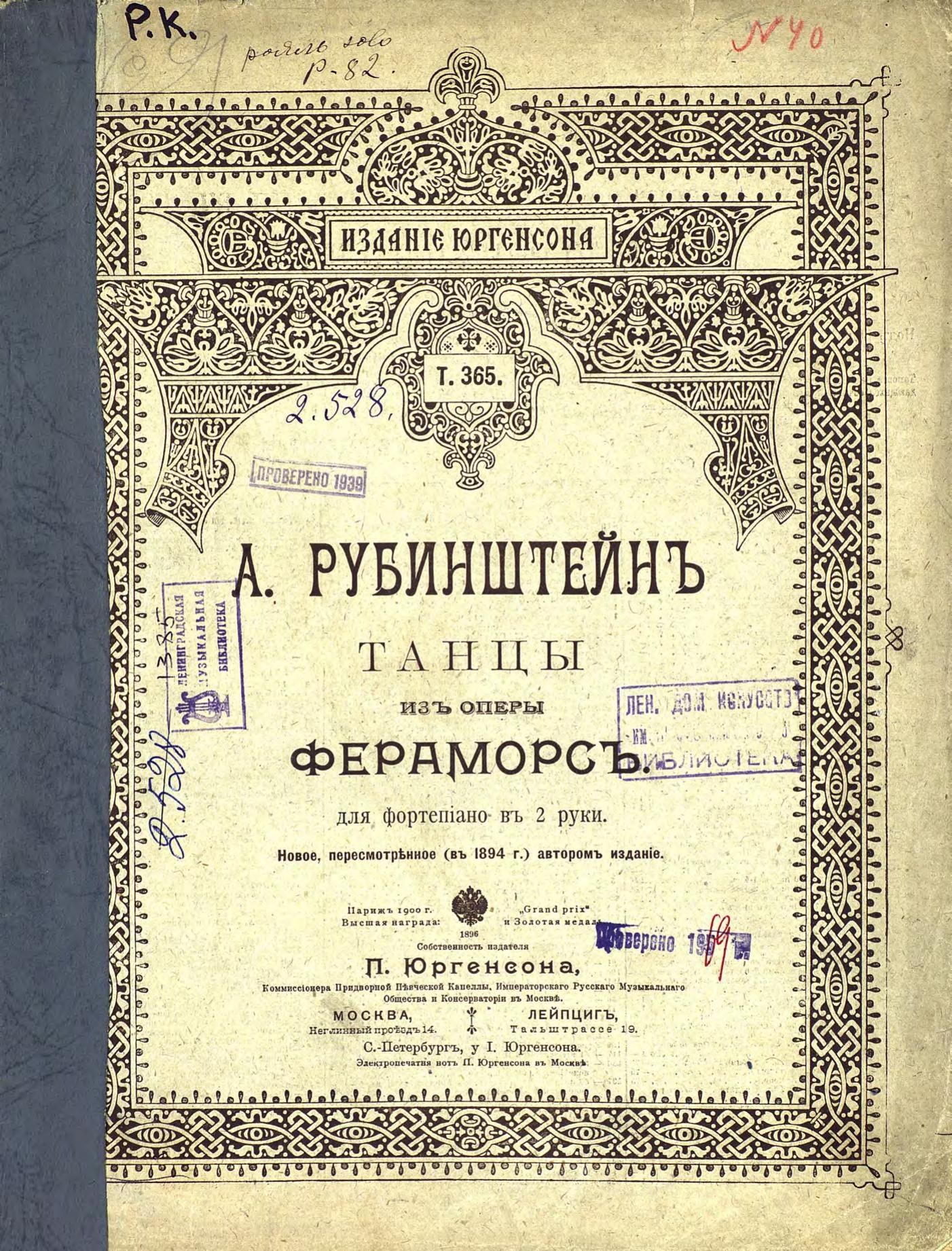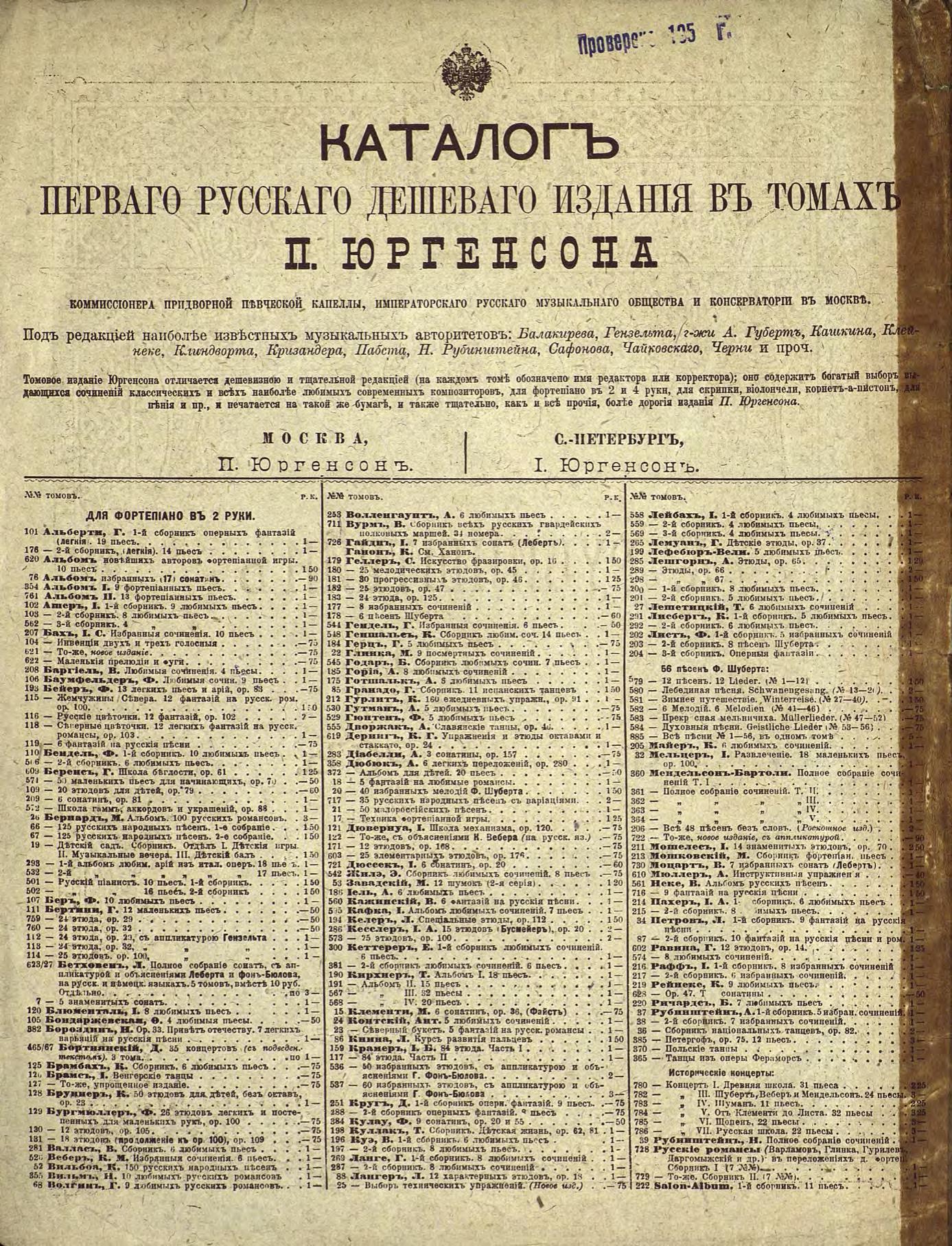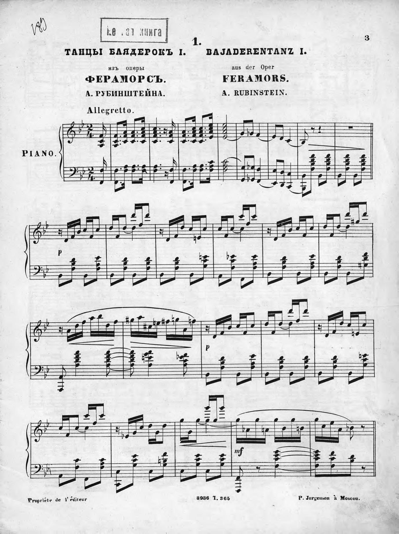 Перешедшие в общественное достояние материалы электронного фонда ЦГПБ им. В.В. Маяковского. Сведения о издательстве или типографии: П. Юргенсон. Место издания: Москва