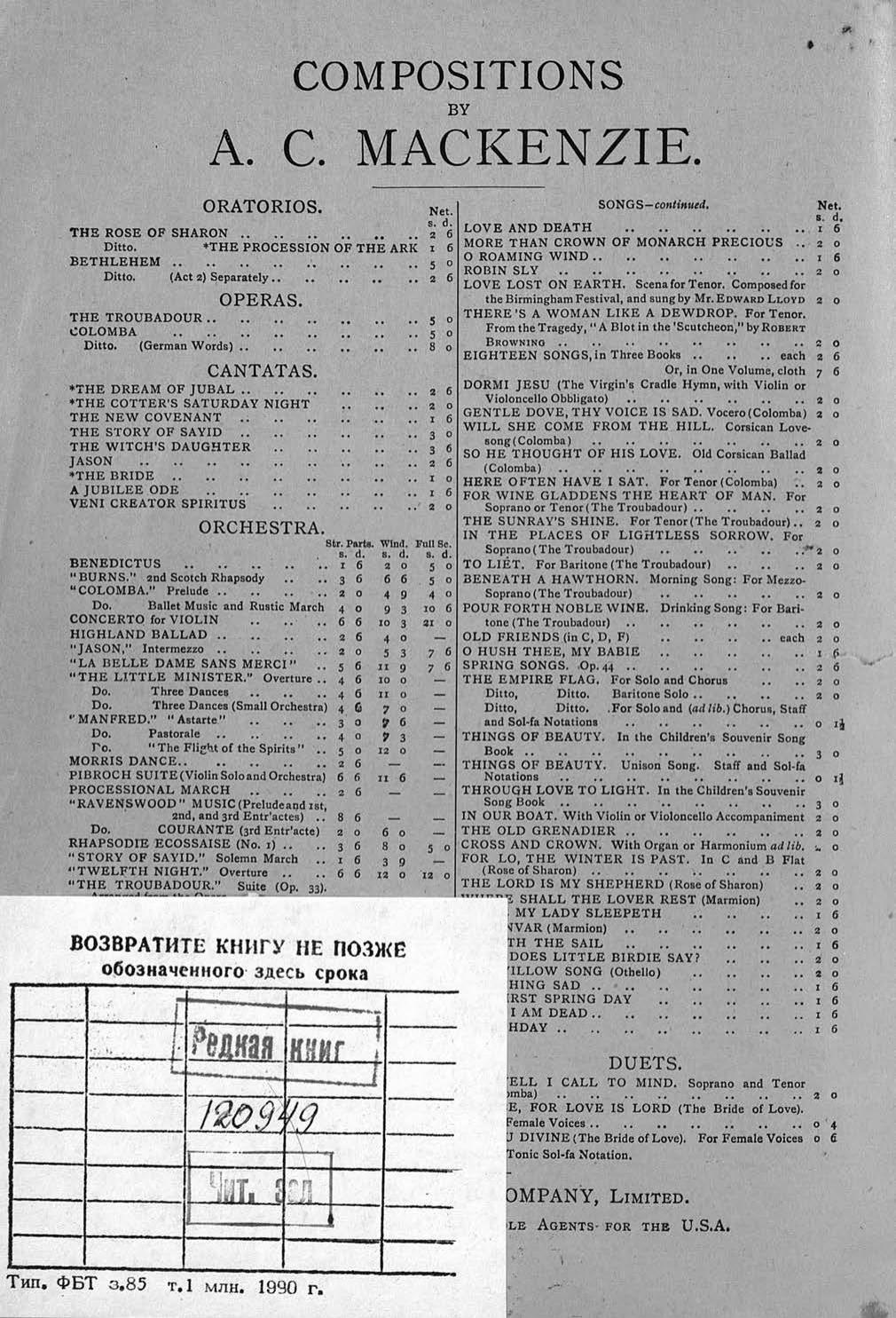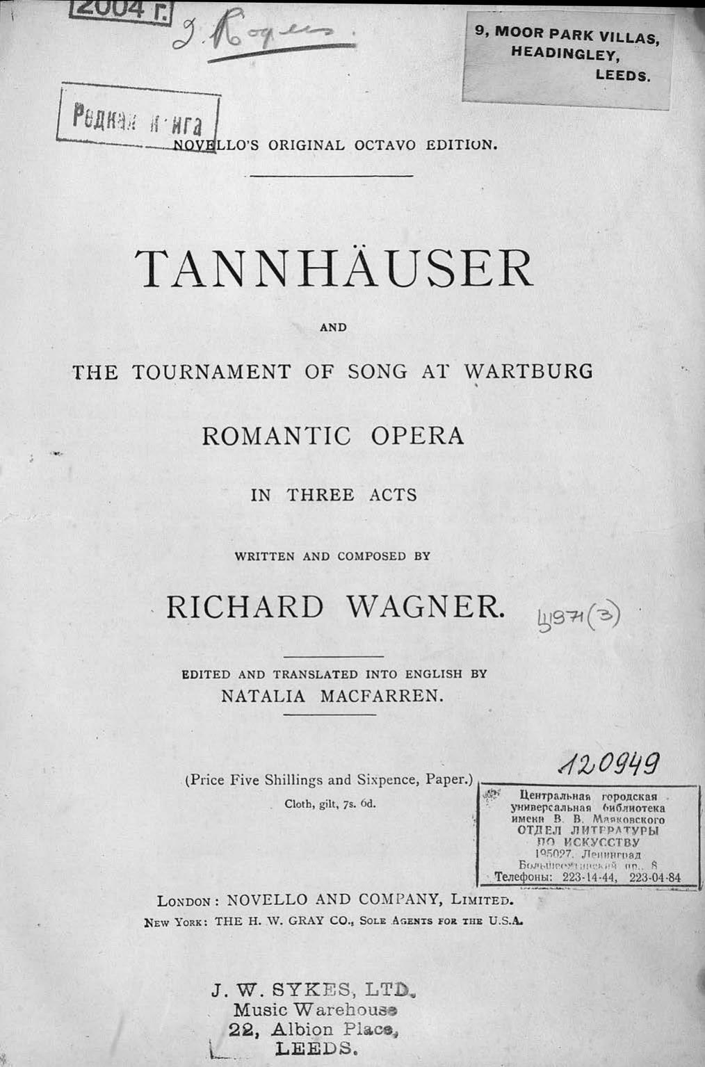 Перешедшие в общественное достояние материалы электронного фонда ЦГПБ им. В.В. Маяковского. Сведения о издательстве или типографии: Novello and company. Место издания: Лондон