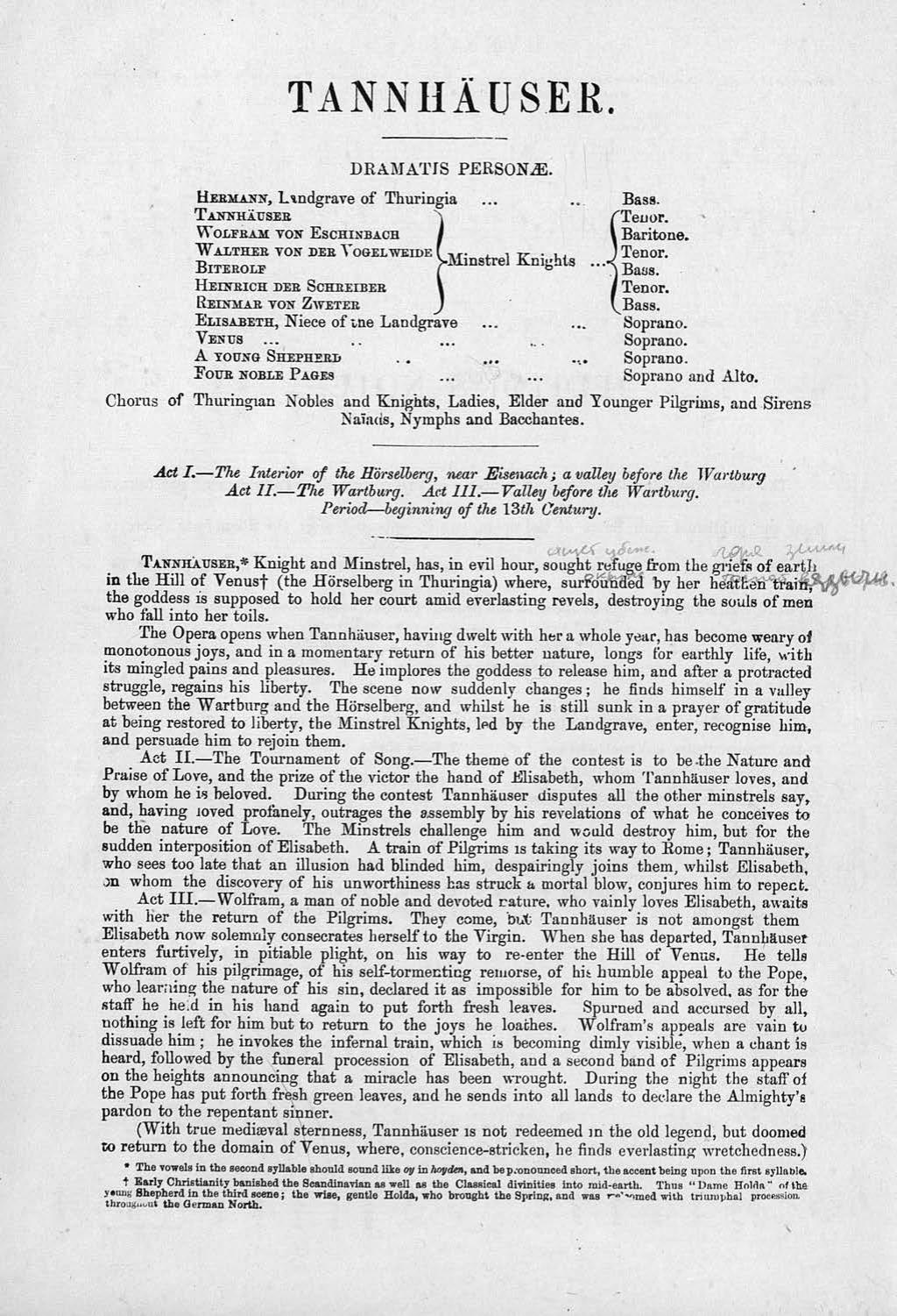 Tannhauser and the tournament of song at wartburg