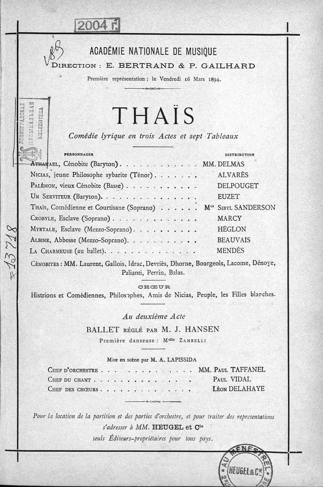 Перешедшие в общественное достояние материалы электронного фонда ЦГПБ им. В.В. Маяковского. Сведения о издательстве или типографии: Heugel & C-ie. Место издания: Париж